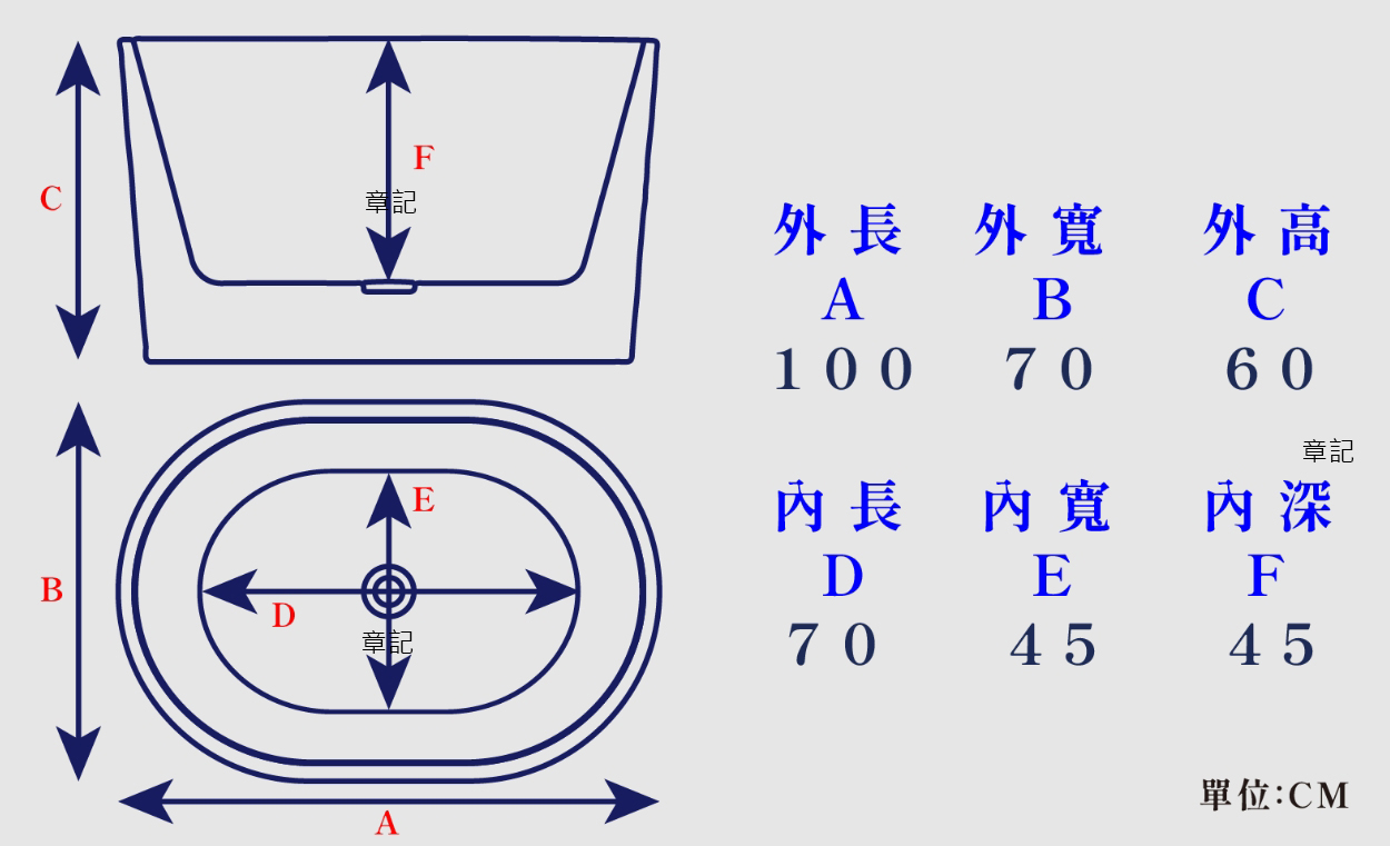CBK 強化壓克力獨立浴缸(100cm) CBK-IBS-100S 尺寸圖