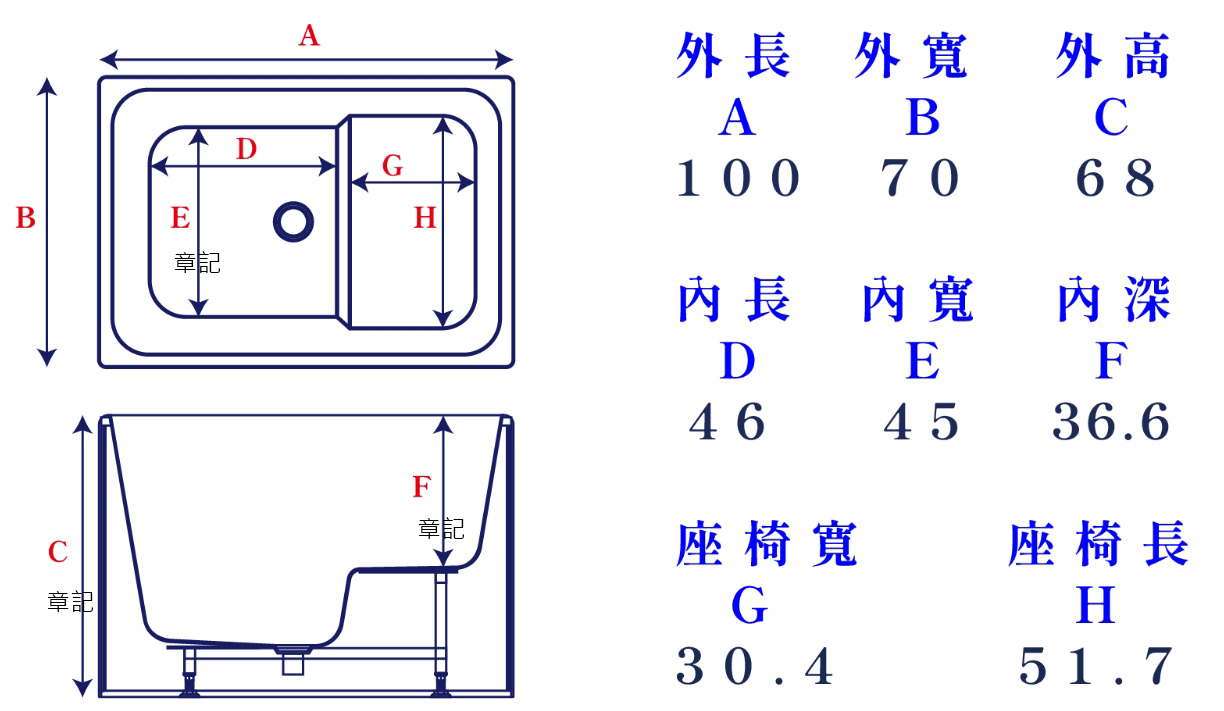 CBK 獨立浴缸(100cm) CBK-IBS-238 尺寸圖