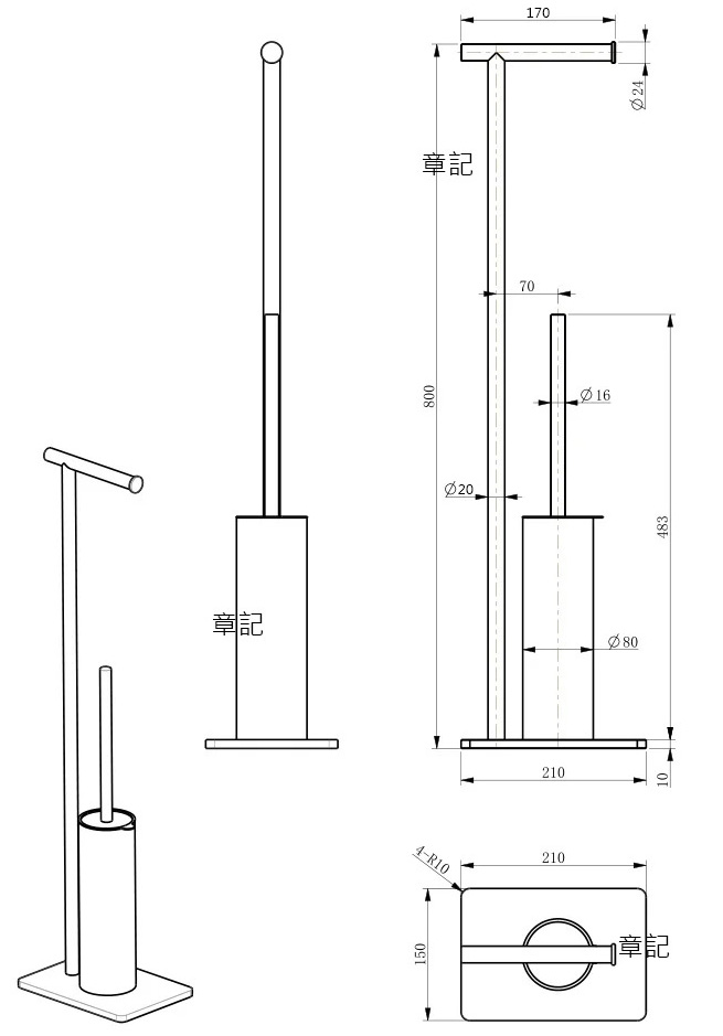CBK 落地式捲筒衛生紙馬桶刷架 CBK-Y-1104