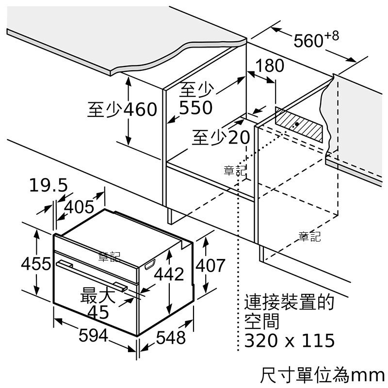 BOSCH 8系列嵌入式蒸爐 CDG714XB1W 尺寸圖