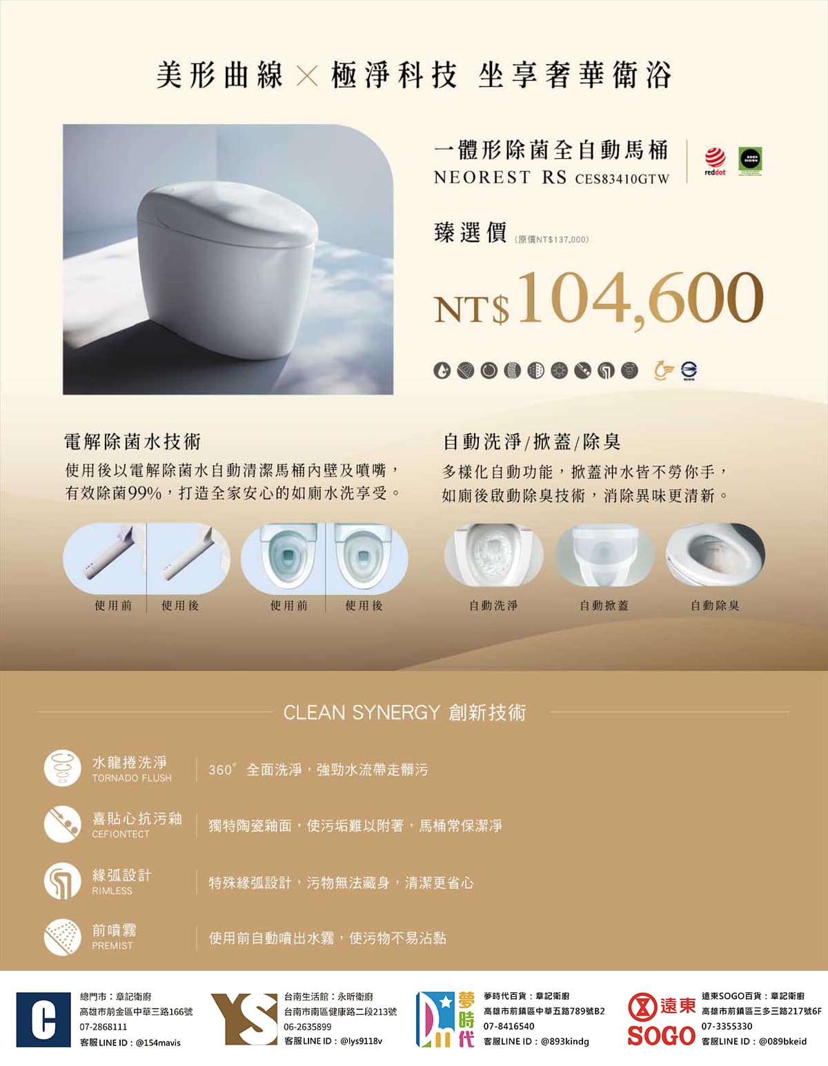 下圖:TOTO NEOREST 全自動馬桶功能比較表