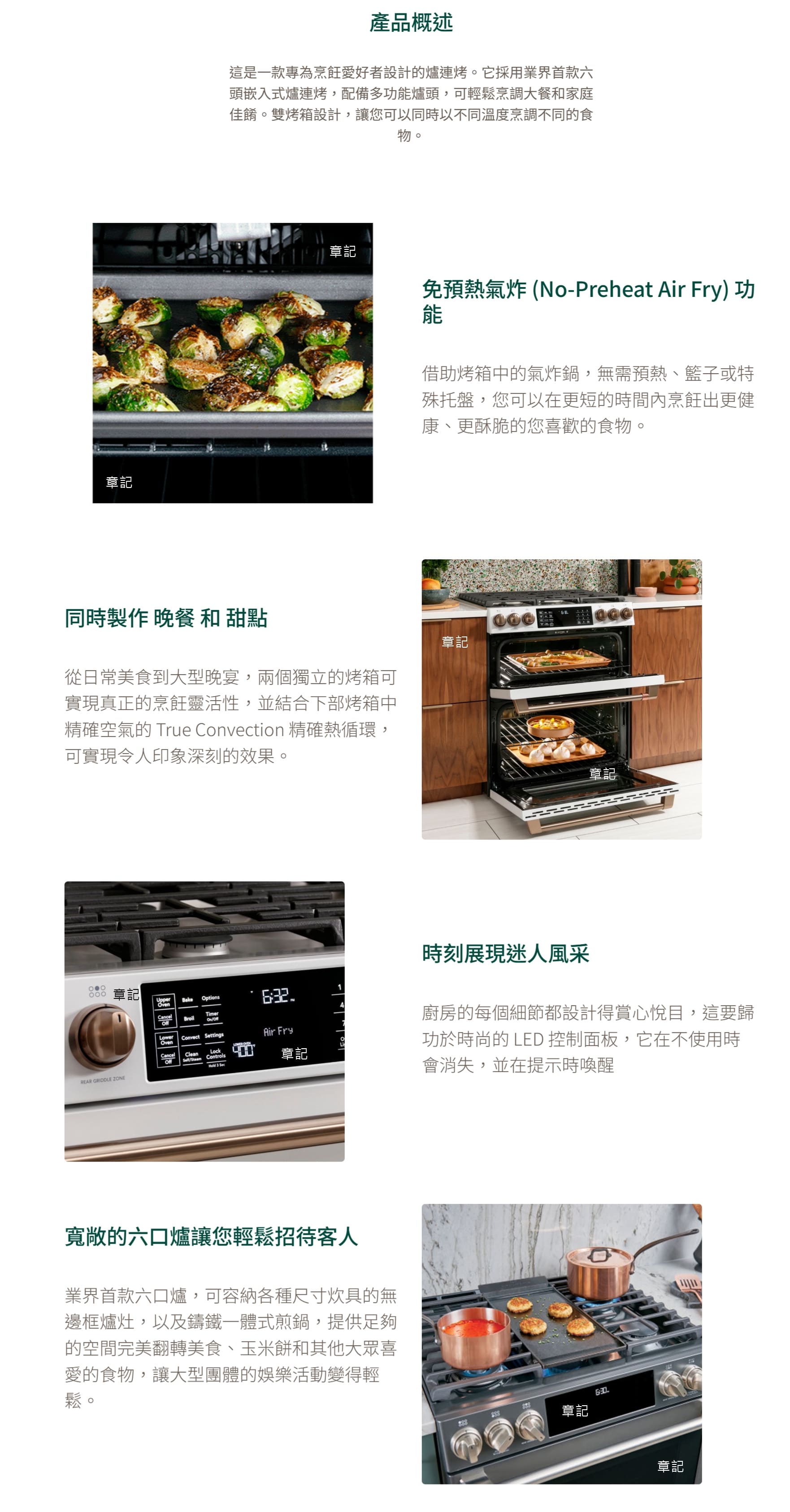 Café 瓦斯型智慧六口單層爐連烤 CGS700P2MS1
