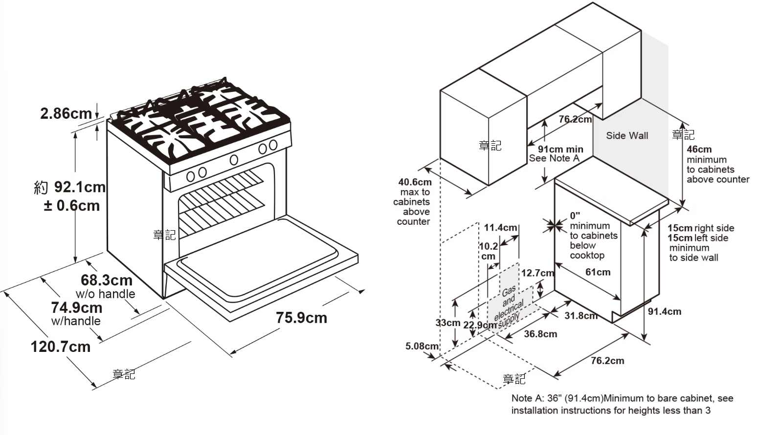 Café 瓦斯型智慧六口單層爐連烤 CGS700P2MS1 尺寸圖