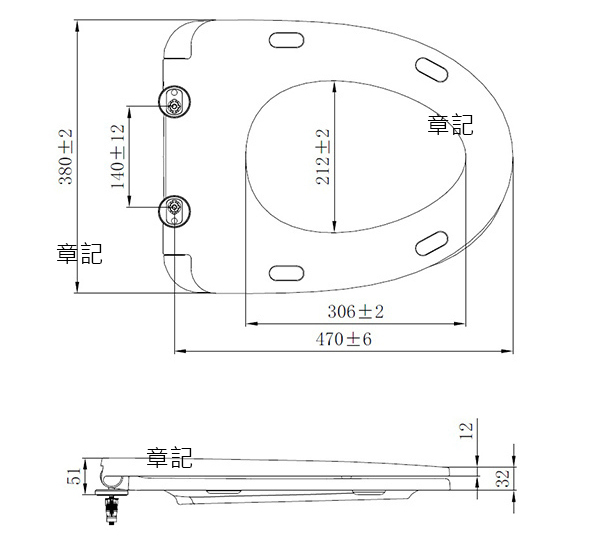 American Standard(美國標準牌)緩降式馬桶蓋 CL6080M-6D_61000NS-WT 尺寸圖