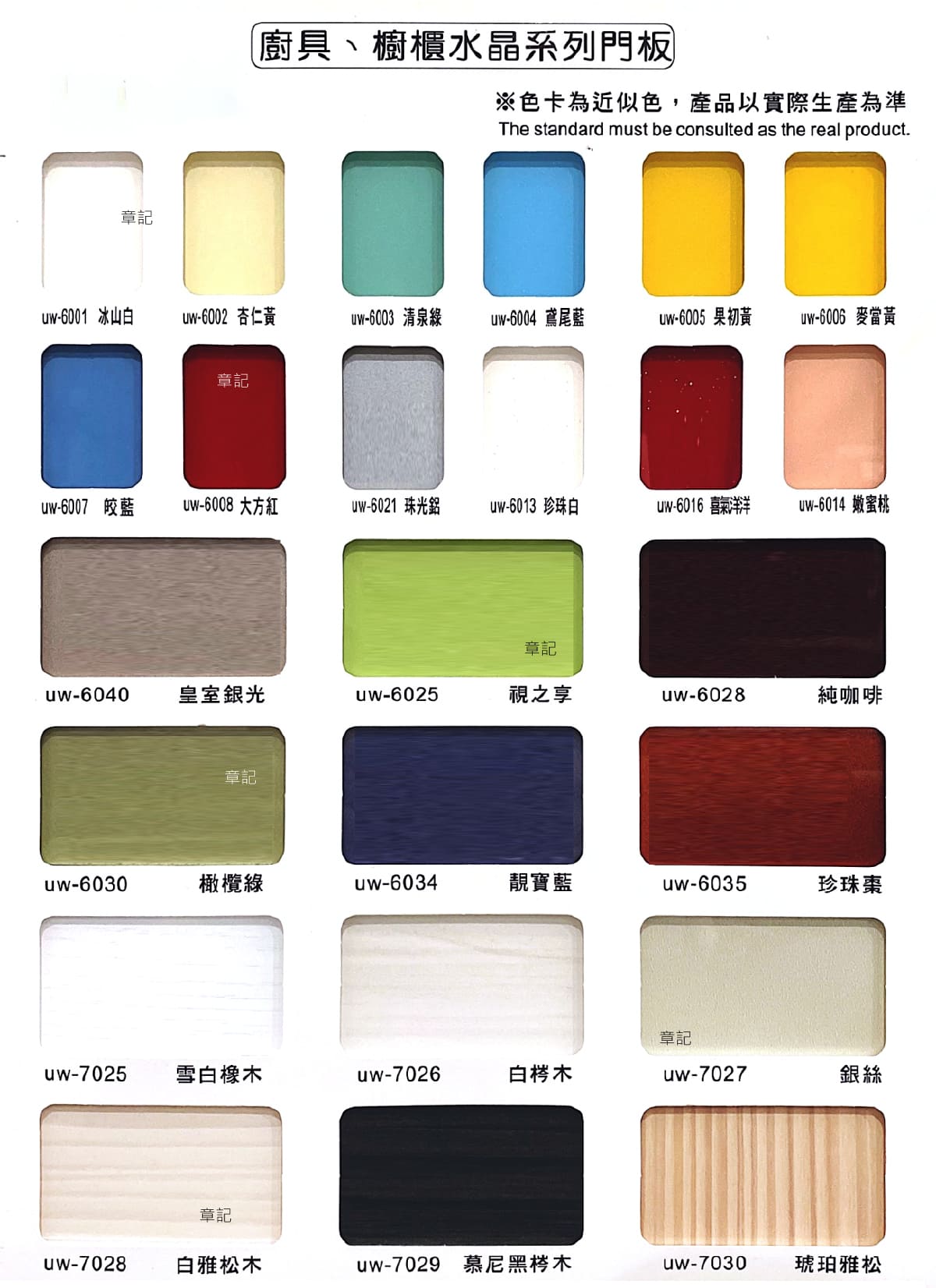我們銷售兩大類廚具櫥櫃:KOHLER Kitchens 以及 國產歐化廚具 以下為 國產歐化廚具 的門片花色選擇