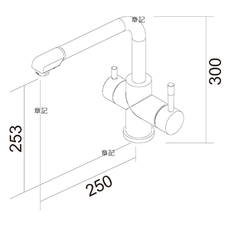 BOSS 無鉛三合一廚房龍頭 D-3122 尺寸圖