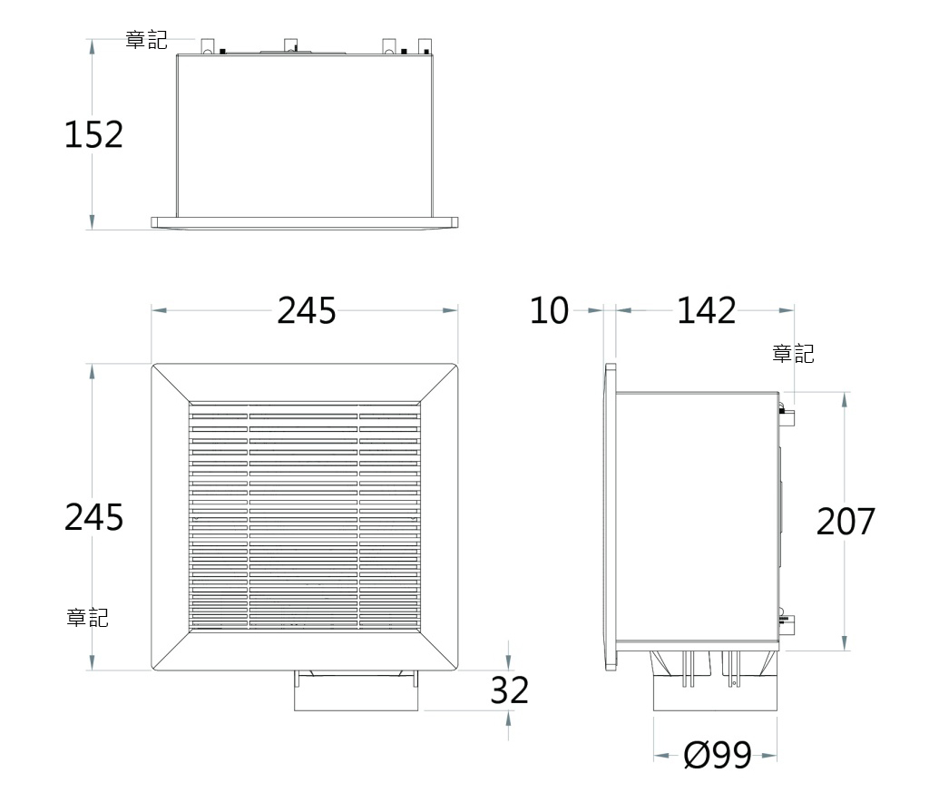 凱撒(CAESAR)靜音換氣扇 D609 尺寸圖