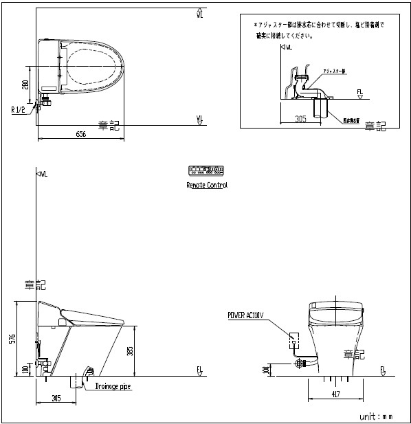 INAX SATIS J 全自動電腦馬桶 DV-J213-VL-TW-BW1 尺寸圖