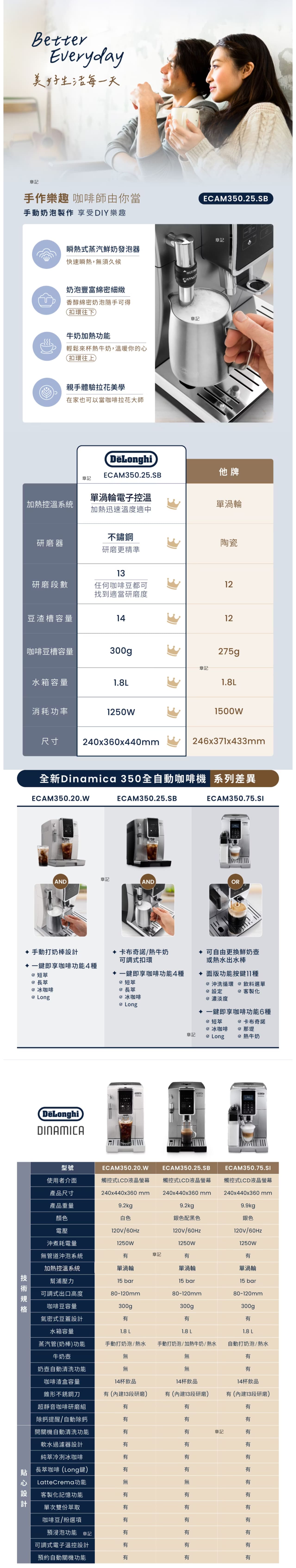 De'Longhi 全自動義式咖啡機 ECAM350.25.SB