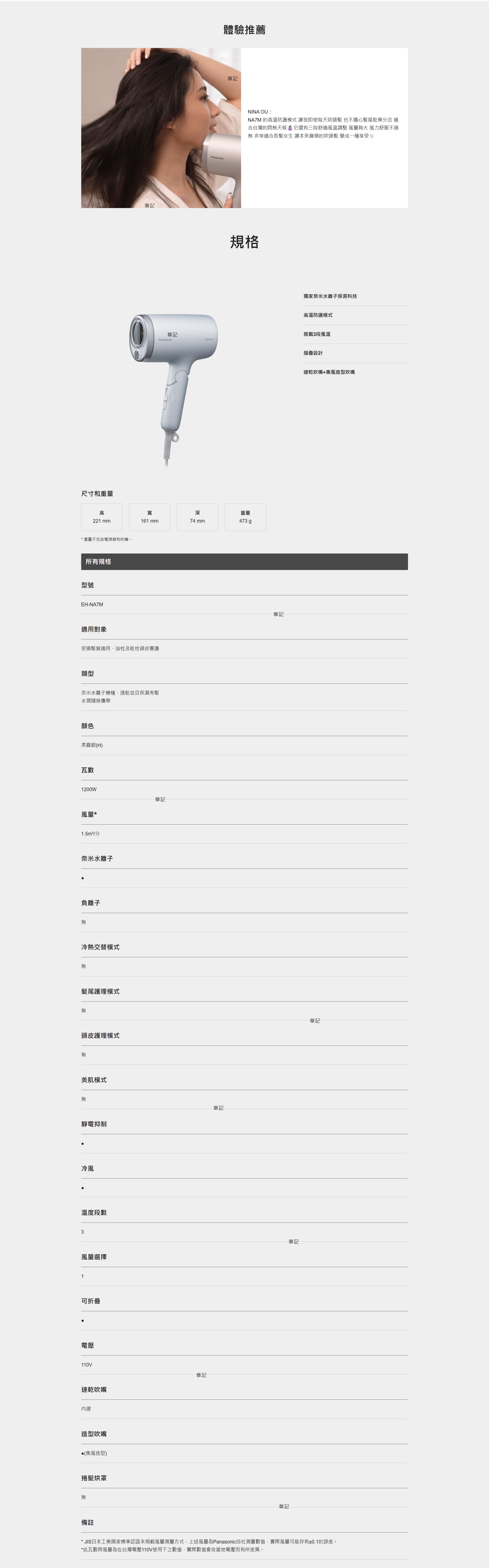 Panasonic 奈米水離子吹風機 EH-NA7M