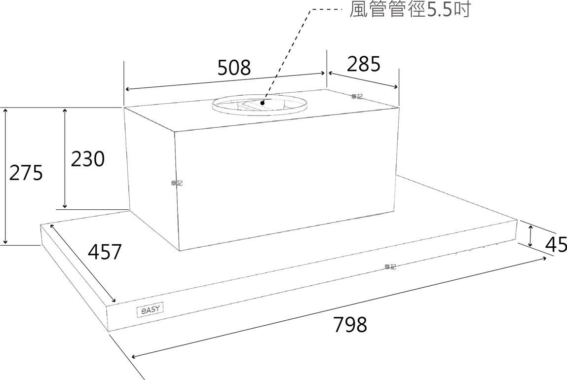 羿麗EASY 4D全域抽油煙機(80cm) EHT798 尺寸圖