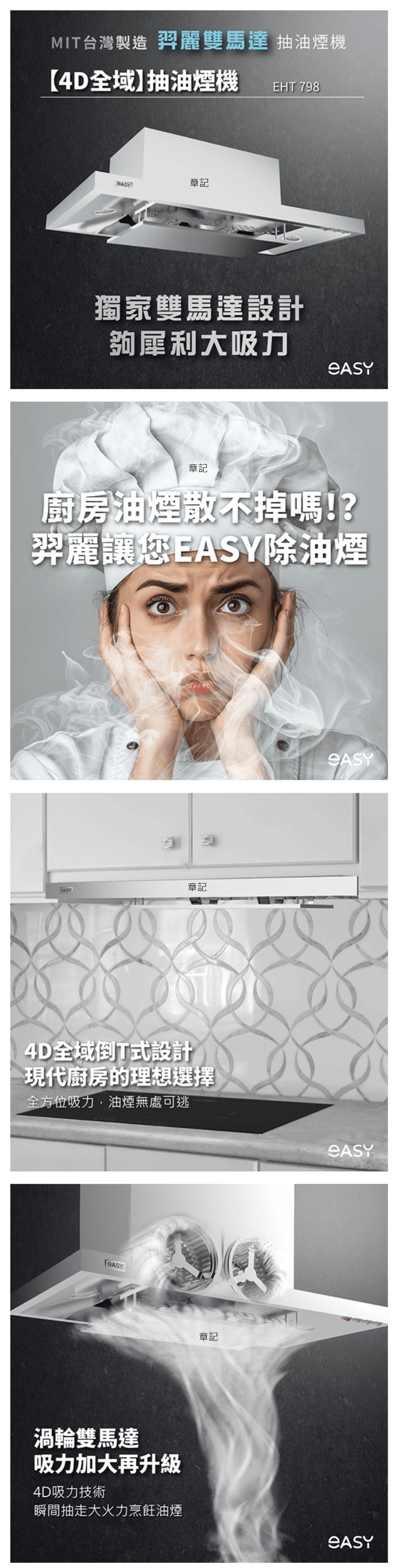 羿麗EASY 4D全域抽油煙機(80cm) EHT798【全省免運費宅配到府】