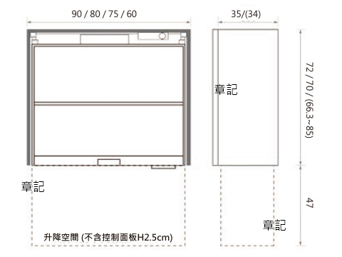 INNOW 電動升降烘碗機(60cm) ELB6072S-2 尺寸圖