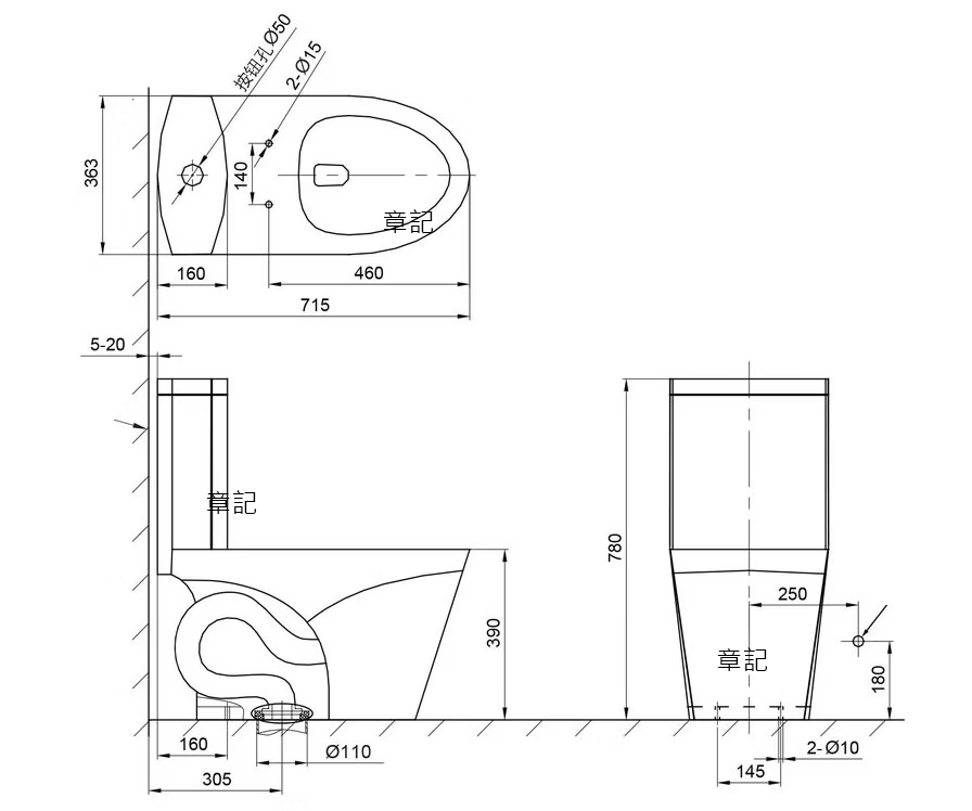 innoci藝耐 單體馬桶 ENC2156JW-3 尺寸圖
