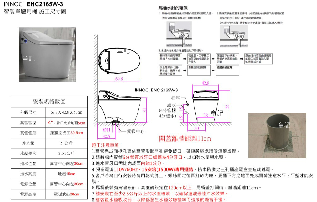 (2)安裝在水壓2.5公斤以上環境,才能達成最佳沖水效。