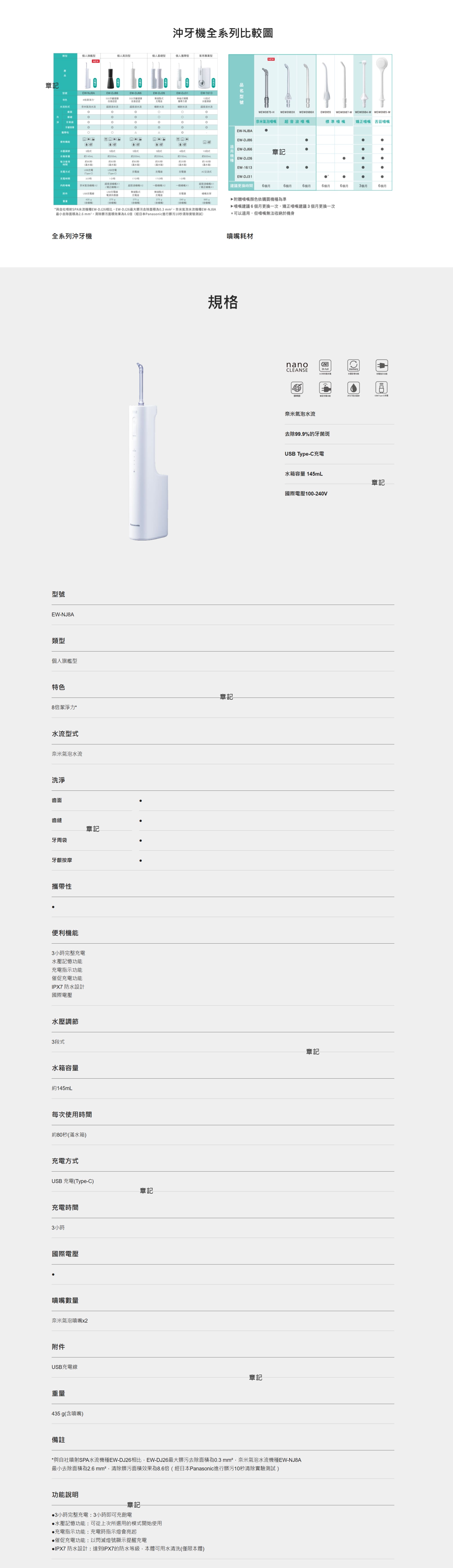 Panasonic 奈米氣泡沖牙機 EW-NJ8A