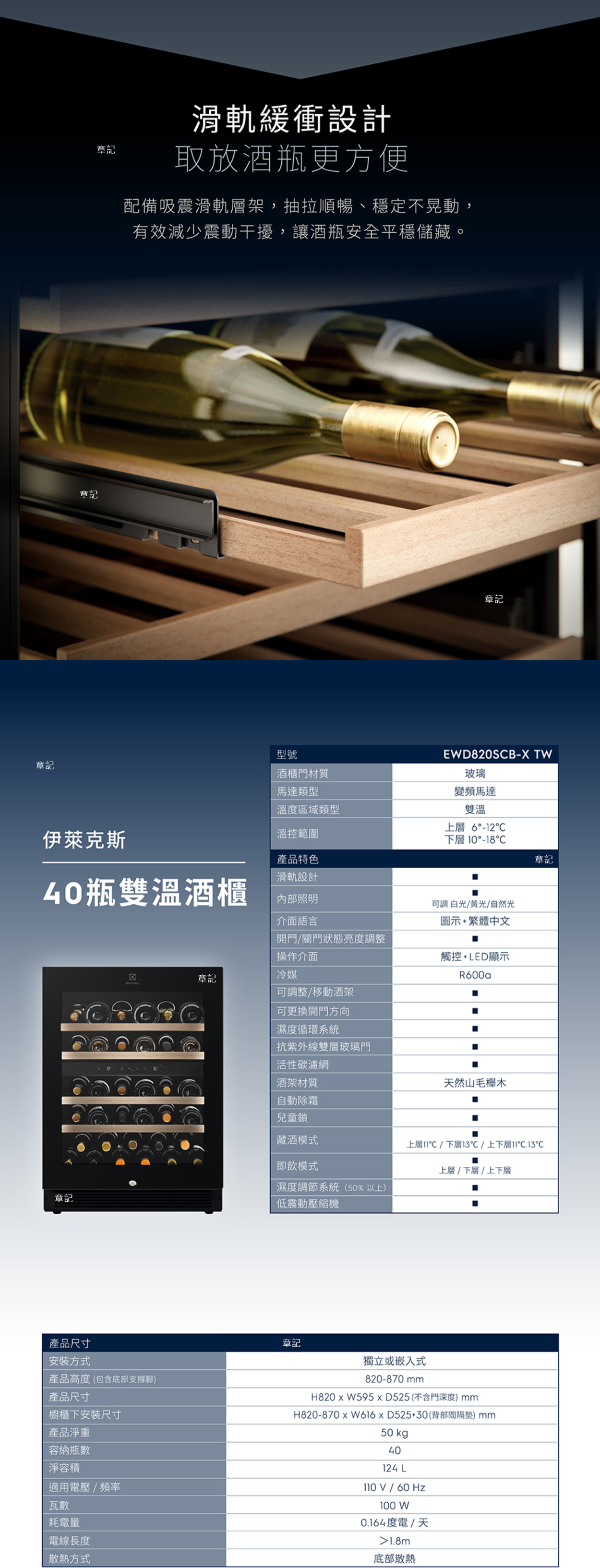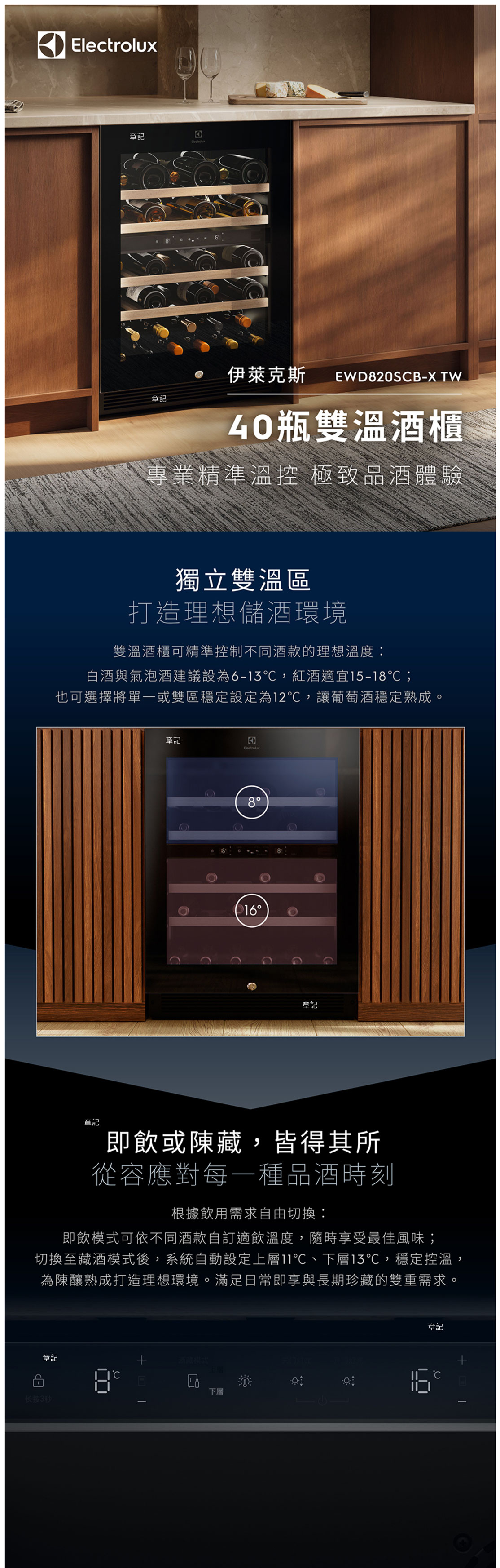 瑞典Electrolux伊萊克斯雙溫紅酒櫃 EWD820SCB-X