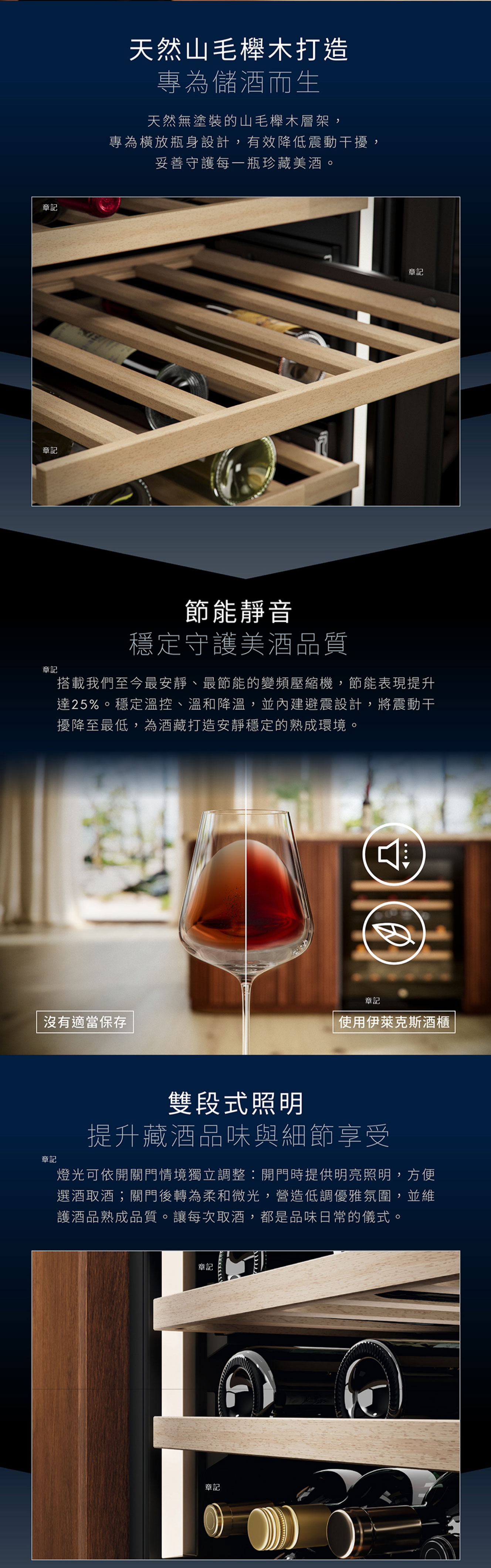 靜音變頻壓縮機節能提升25%,同時提供最佳儲酒條件。
