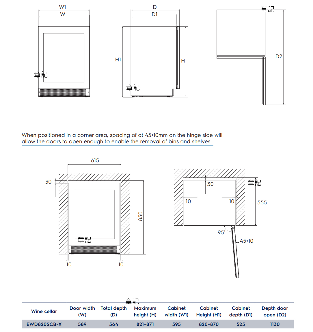 瑞典Electrolux伊萊克斯獨立式/嵌入式雙溫紅酒櫃 EWD820SCB-X 尺寸圖