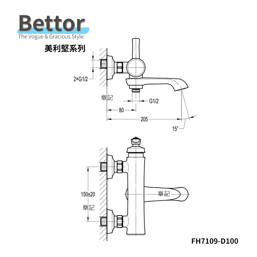 Bettor 單把浴缸龍頭(主體) FH7109-D100-ORB 尺寸圖