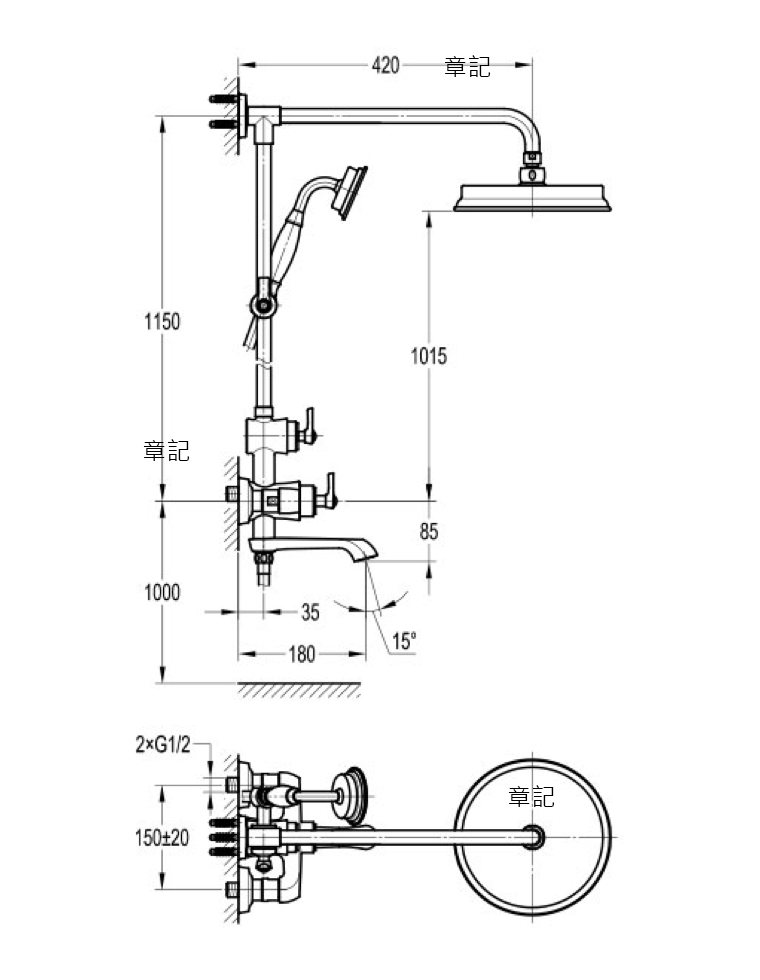 Bettor 單把浴缸淋浴龍頭組 FH8187-D77-PZ 尺寸圖
