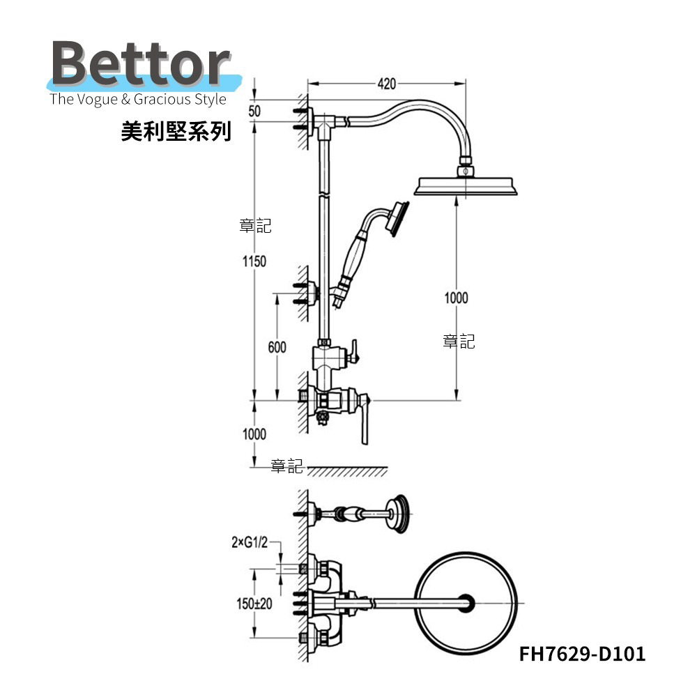 Bettor 美利堅淋浴花灑 FH7629-D101-ORB