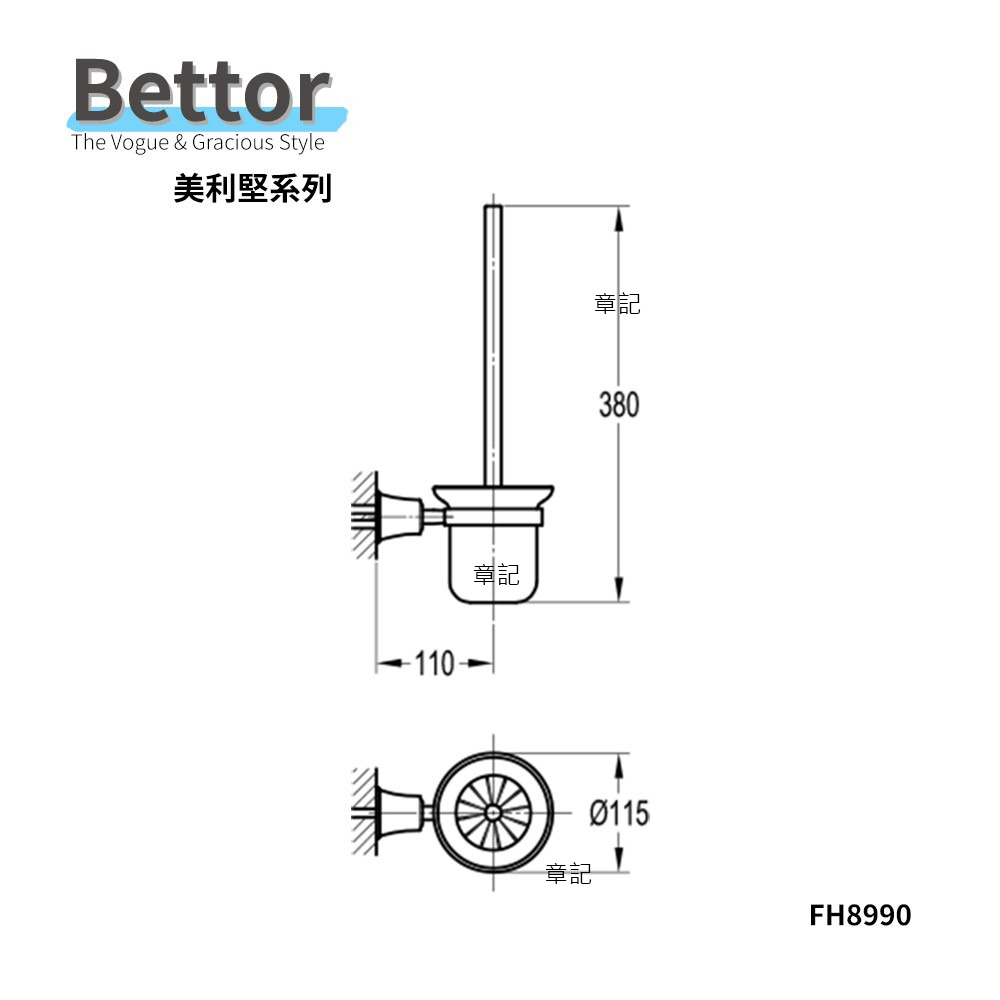 Bettor 馬桶刷架 FH8990 尺寸圖
