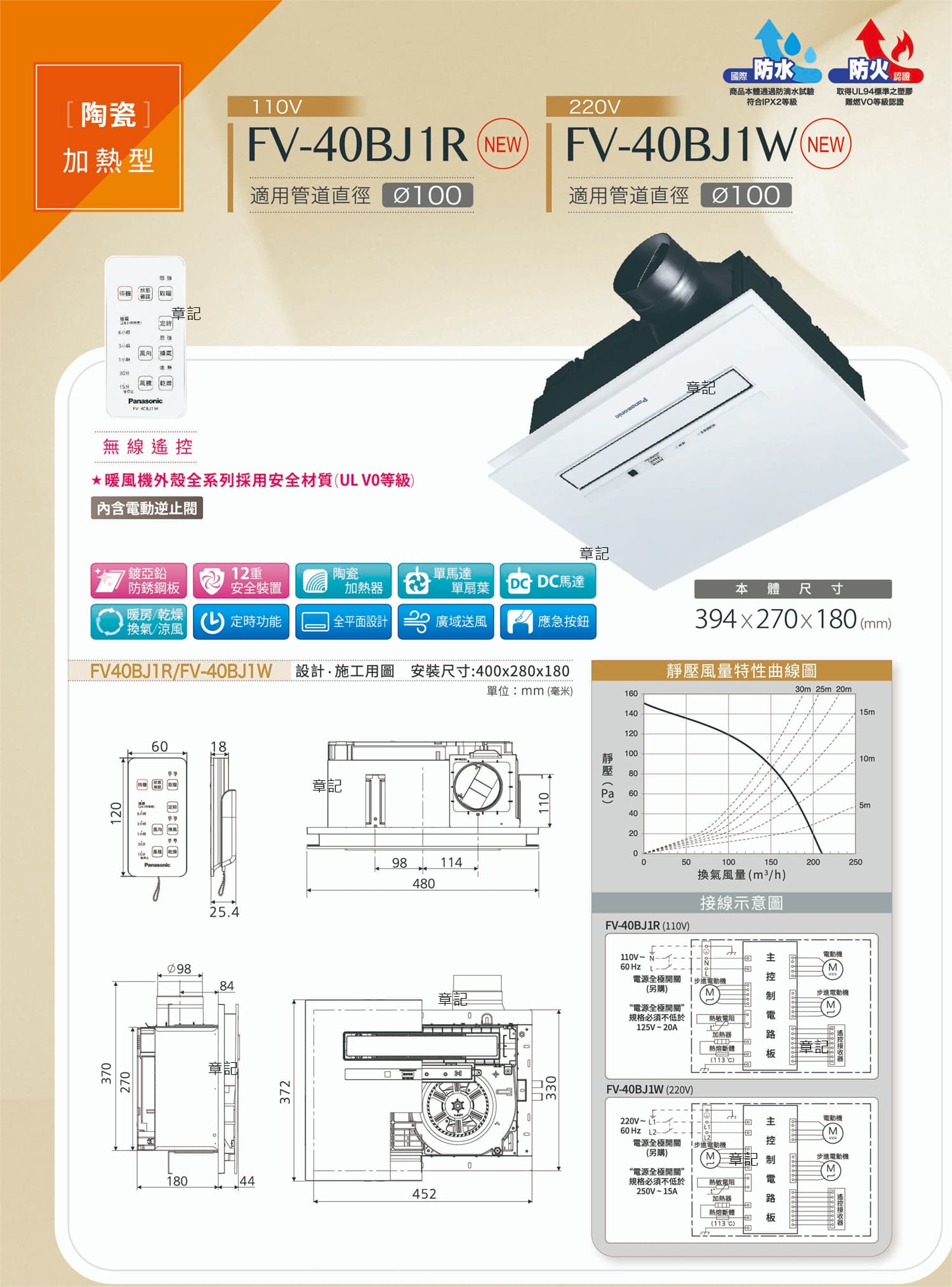 Panasonic國際牌浴室暖風乾燥機(110V/220V/遙控) FV-40BJ1R_FV-40BJ1W