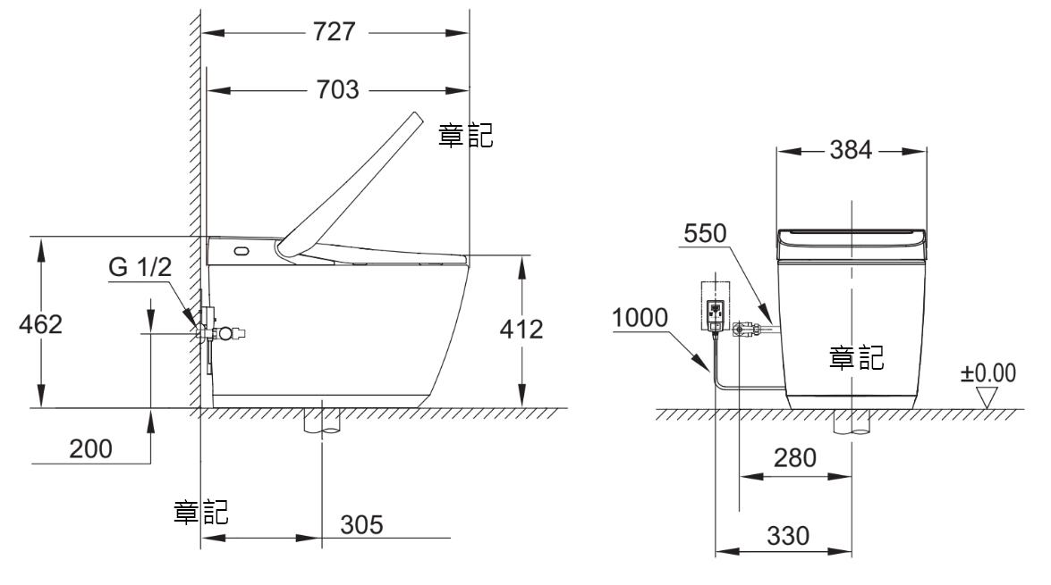 GROHE IGINA 5000 全自動智慧電腦馬桶 GR112525SH00 尺寸圖