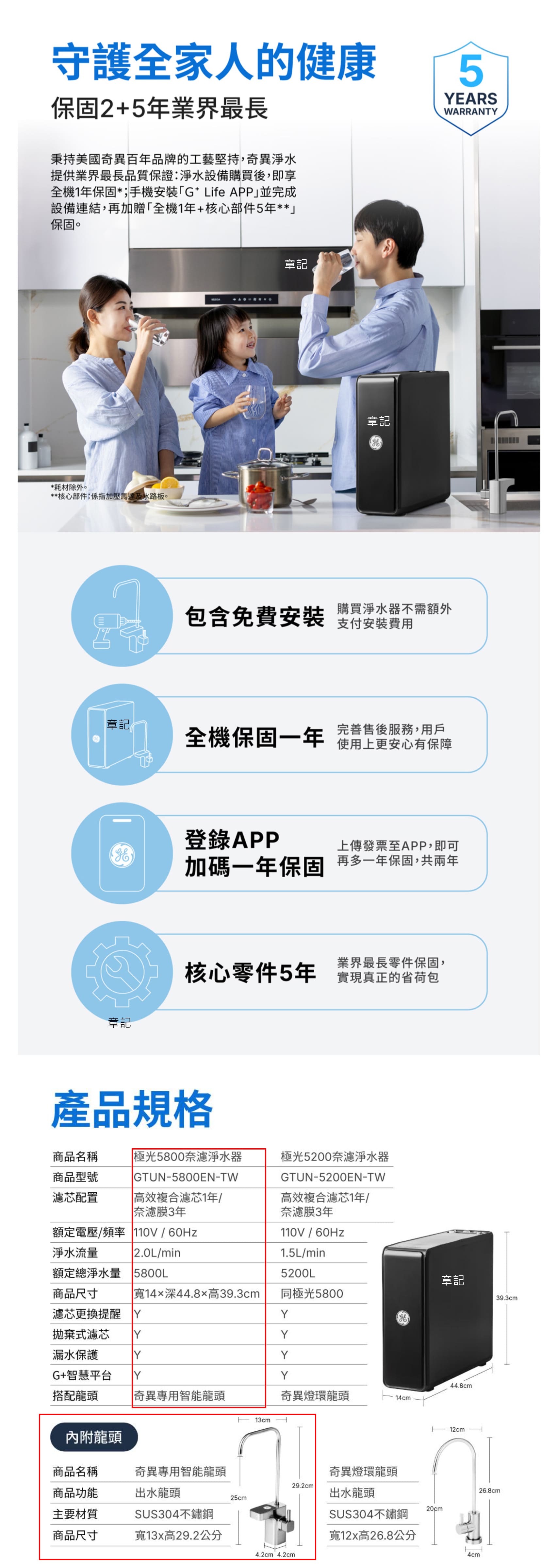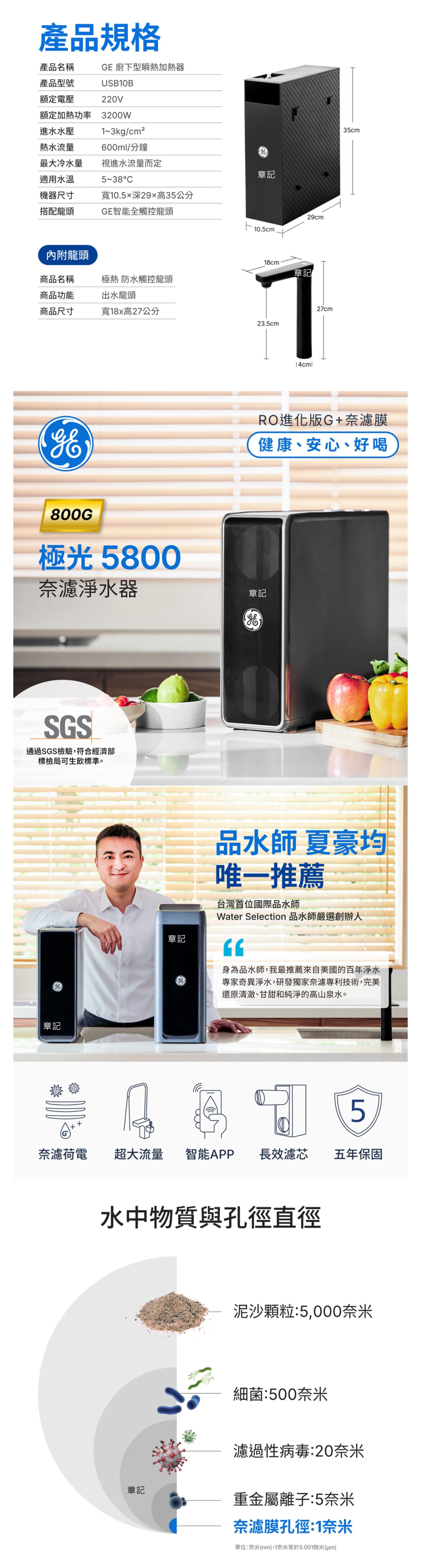 GE奇異淨水 極光5800瞬熱飲水機淨水組 GTUN-5800EN-TW_USB10B