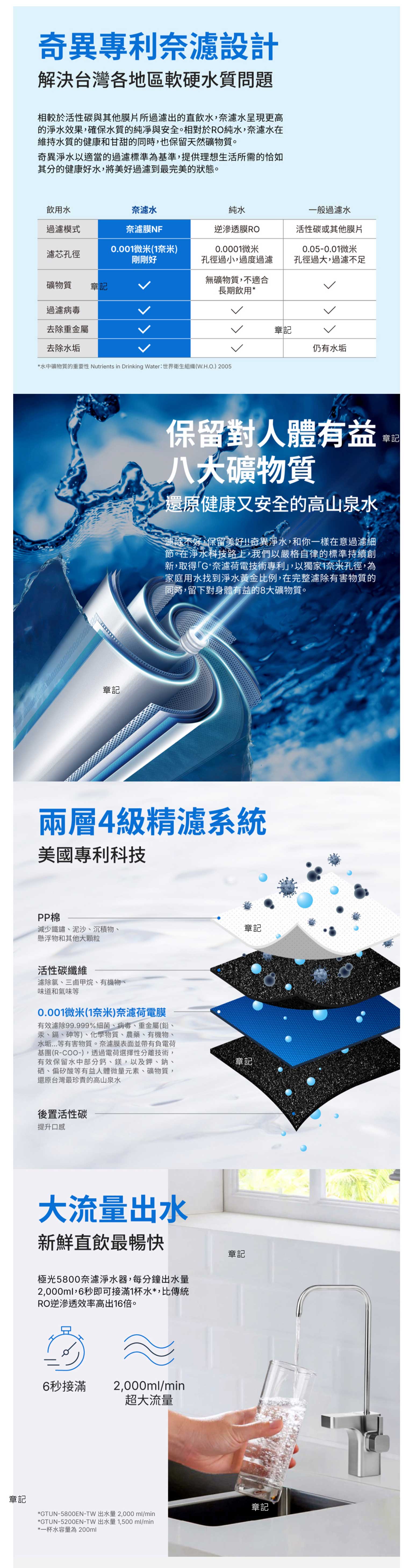 淨水大流量,6秒鐘一杯直飲水(2,000ml/min)。