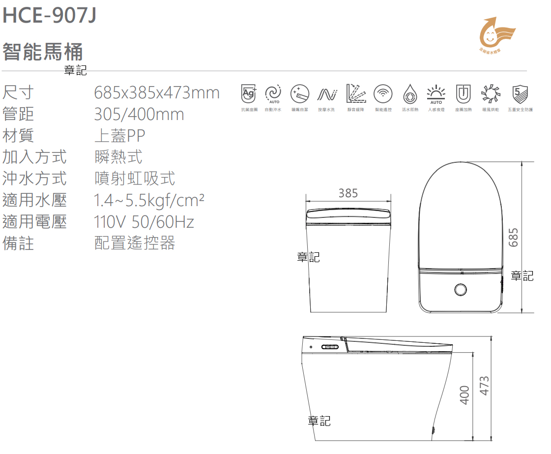 HEGII 智能馬桶 HCE-907J