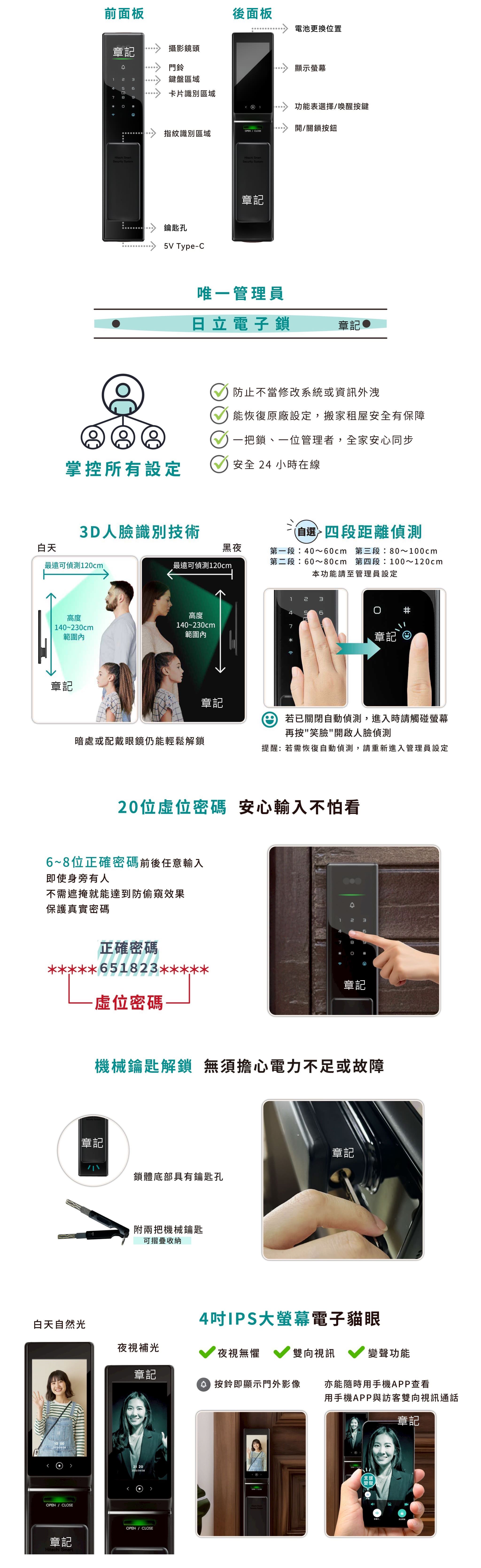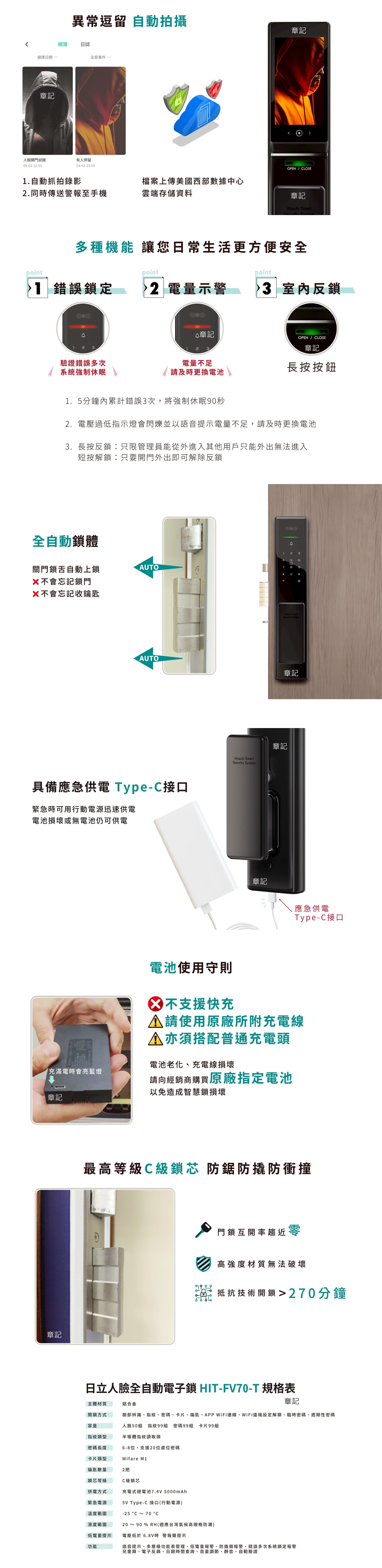 HITACHI日立和系列七合一人臉貓眼電子鎖 HIT-FV70-T (含安裝)