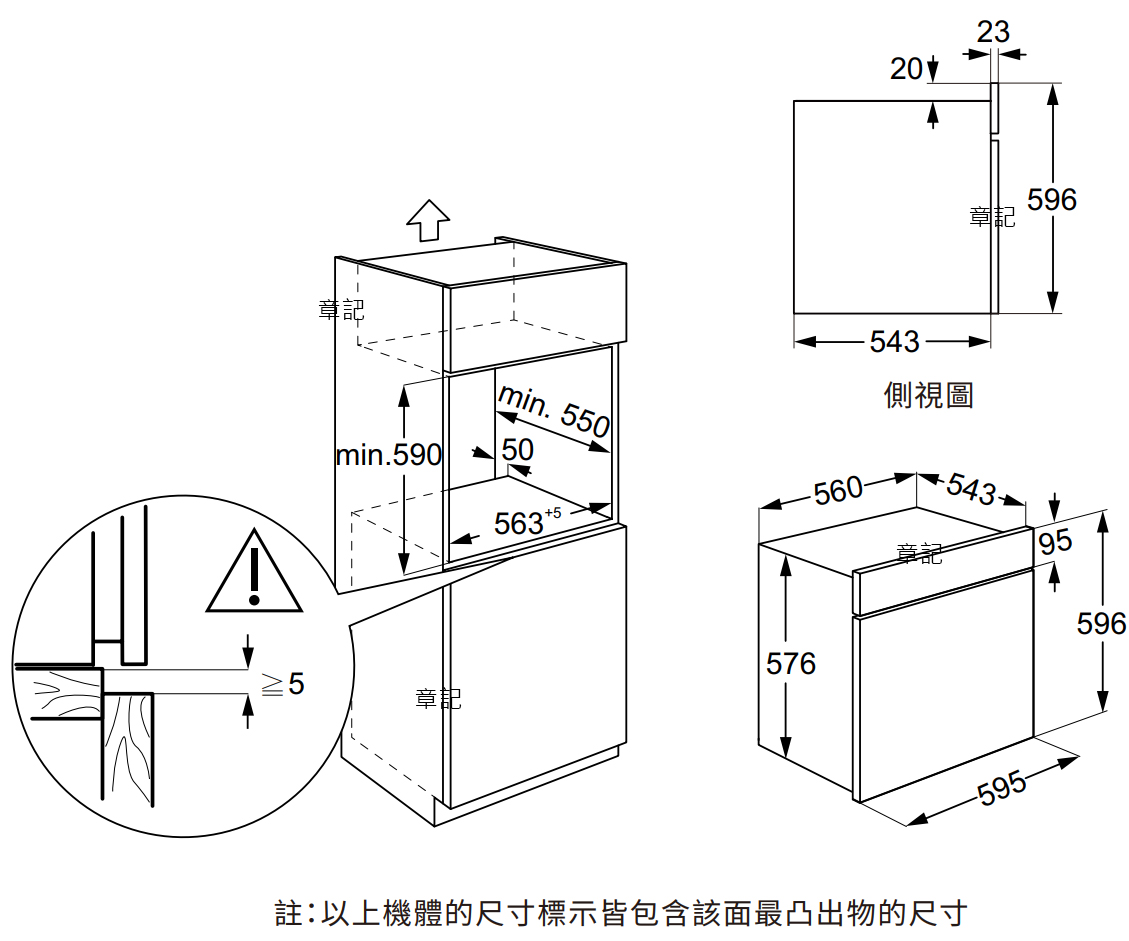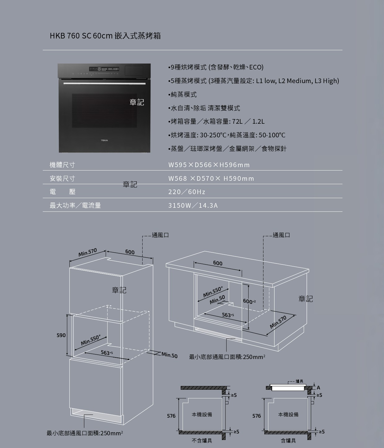 TEKA嵌入式蒸烤箱 HKB760SC 尺寸圖