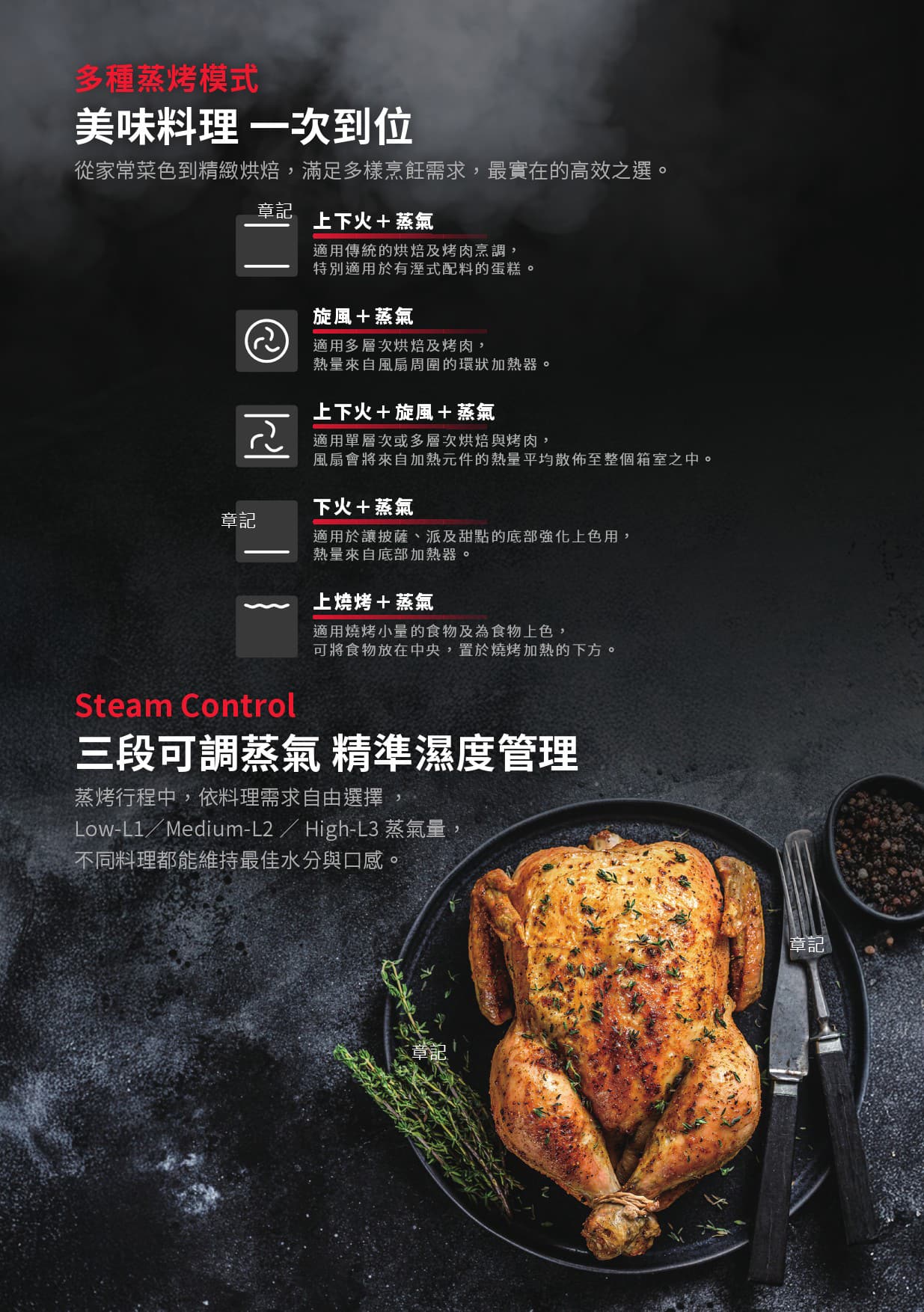 純蒸.烘烤.蒸烤三用 | 食物探針 | 水自清除垢