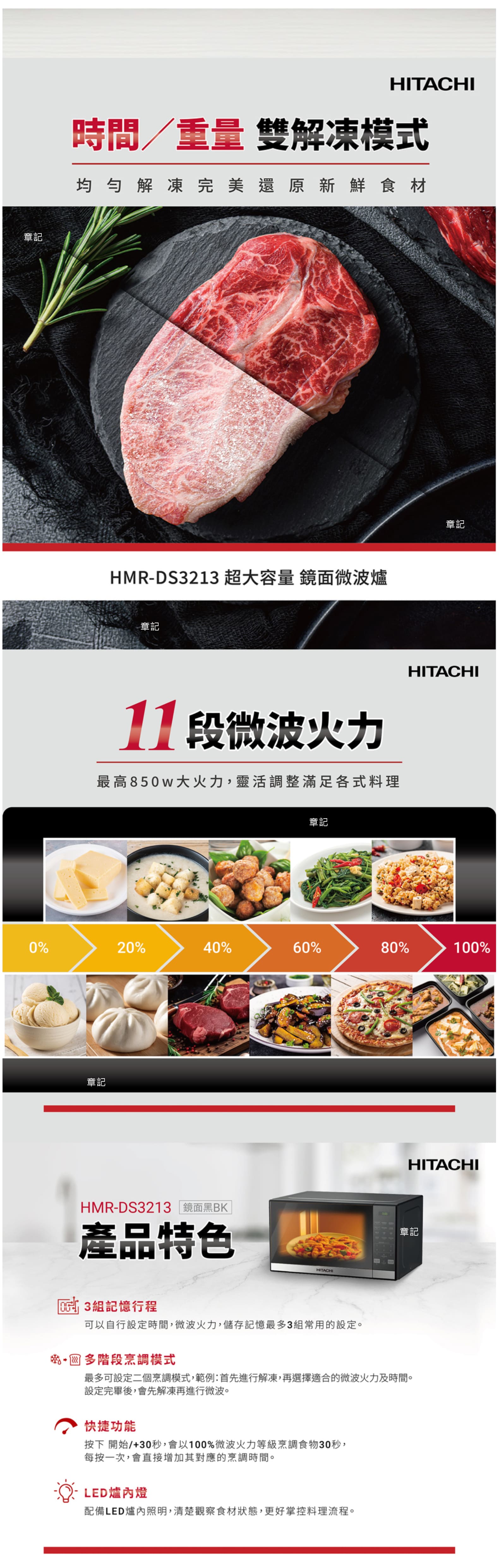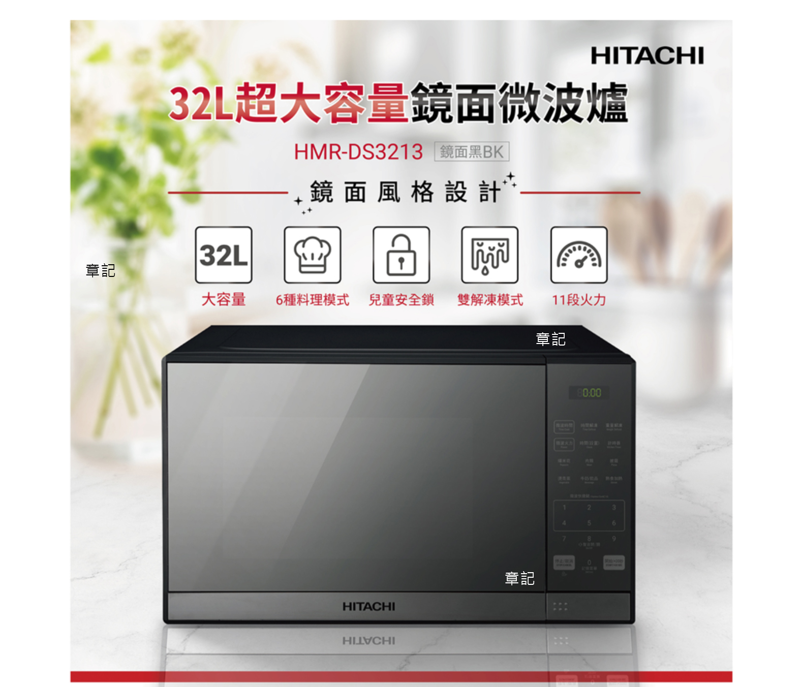 HITACHI日立鏡面微波爐 HMRDS3213【全省免運費宅配到府】