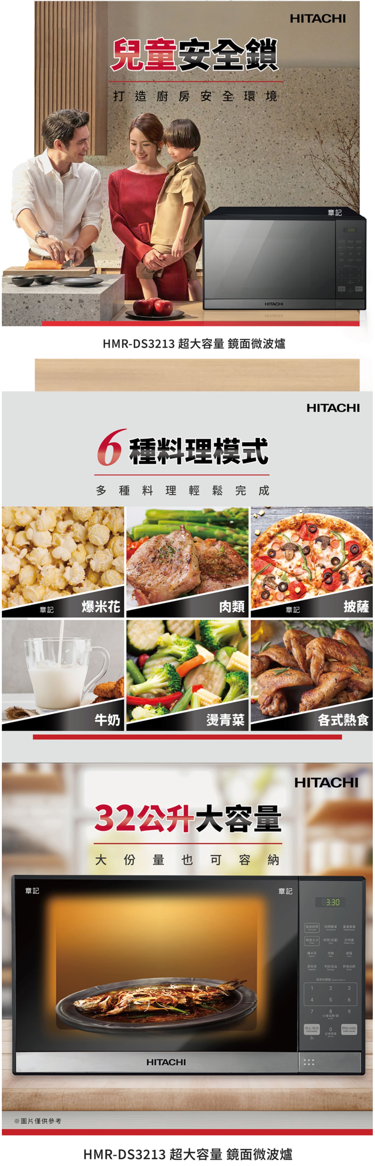 HITACHI日立鏡面微波爐 HMRDS3213