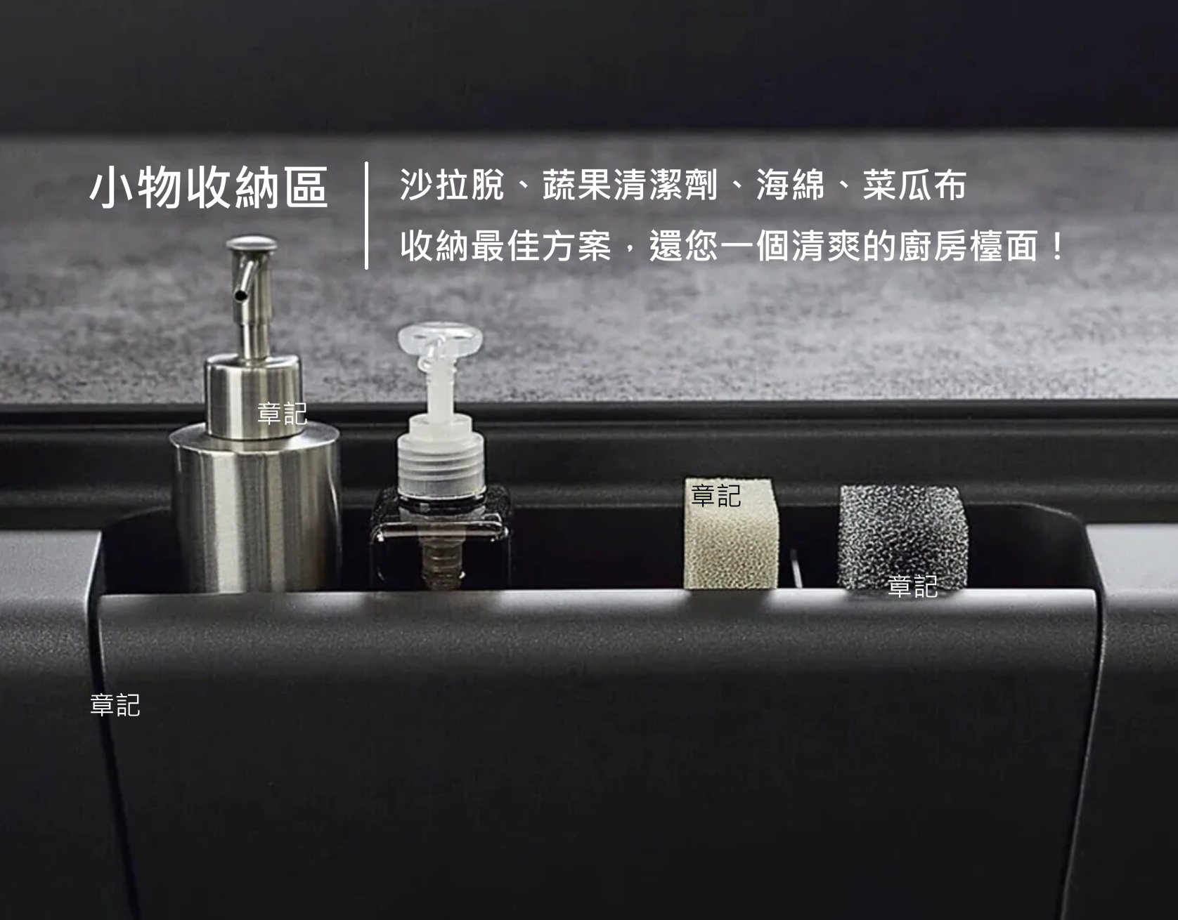 標準配件:砧板支撐架、小滴水籃、可伸縮大滴水籃、濾網。