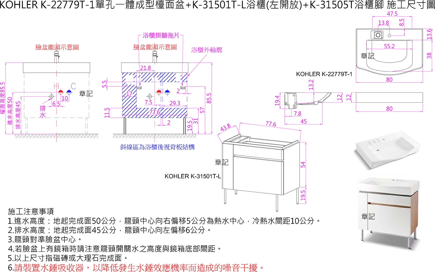 KOHLER Family Care 浴櫃盆組 K-22779T-1-0_K-31501T-LR-PD1 尺寸圖