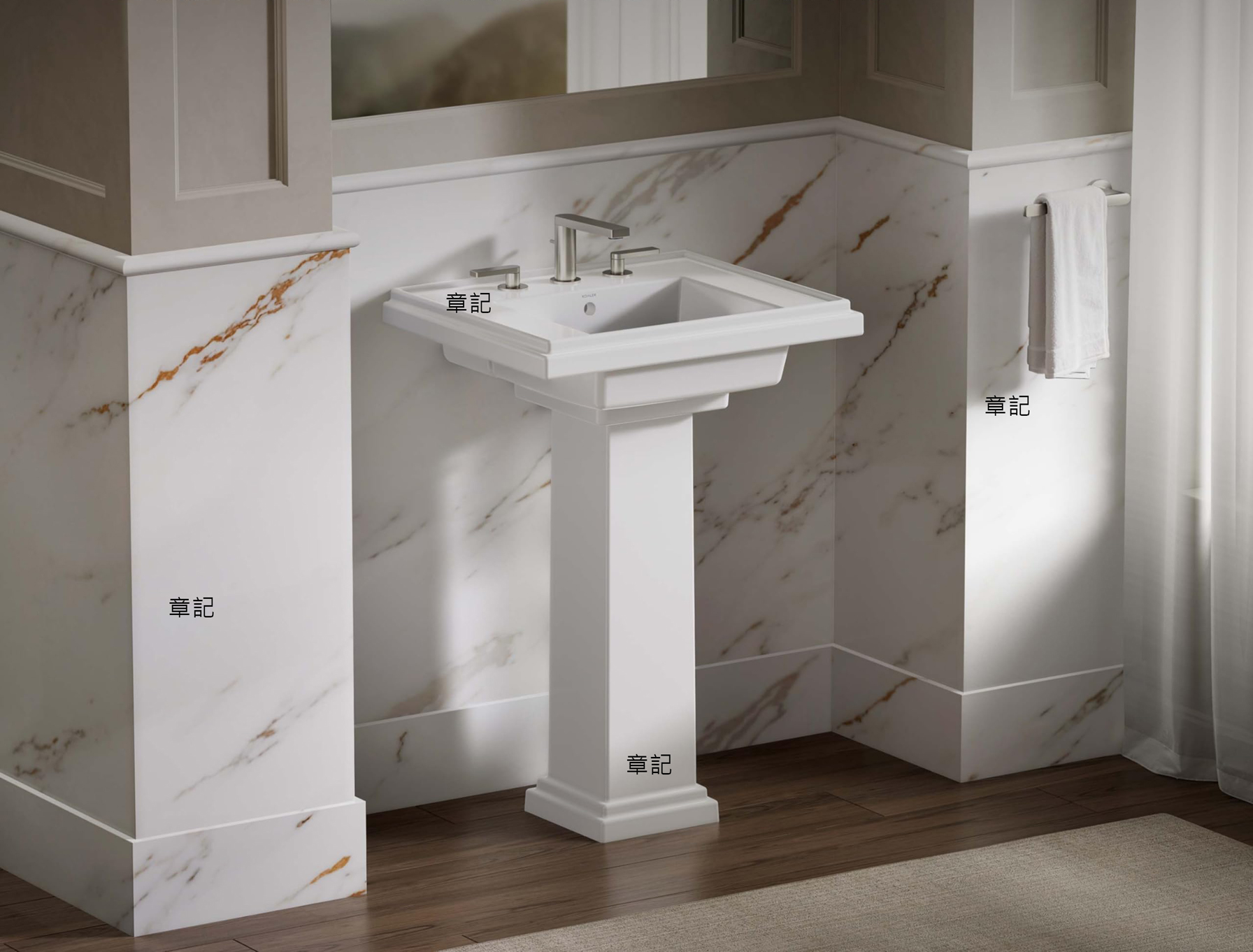KOHLER Tresham 方形立柱式瓷腳面盆(61cm) K-2844-8-0