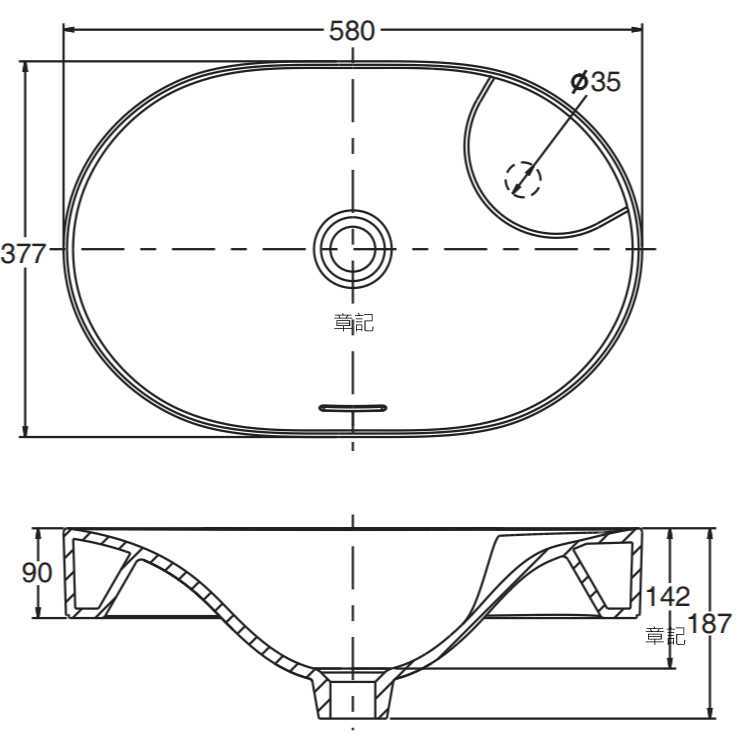KOHLER Chalice 檯面盆 K-31705T-1-0 尺寸圖
