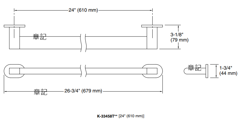 KOHLER BELAY 安全扶手 K-33458T-CP 尺寸圖