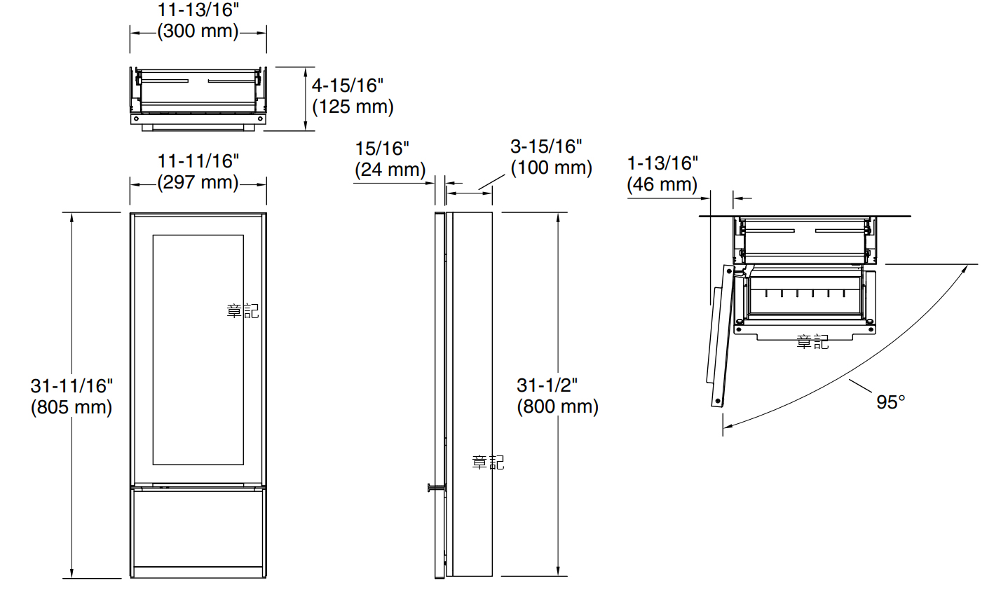 KOHLER Collage 玻璃櫃 (30cm) K-33695T-L-NA 尺寸圖