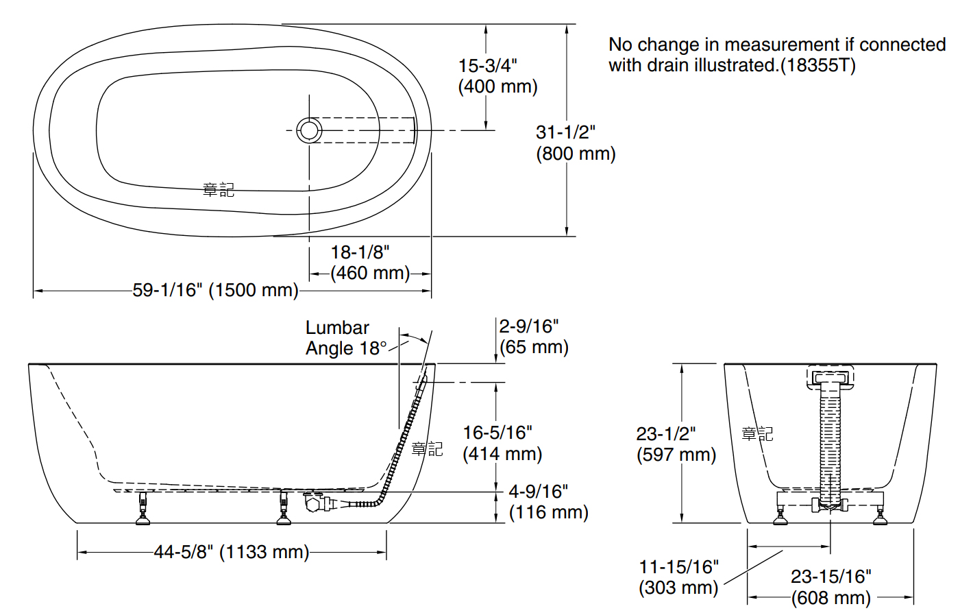 KOHLER Sunstruck 壓克力浴缸(150cm) K-36648T-0 尺寸圖