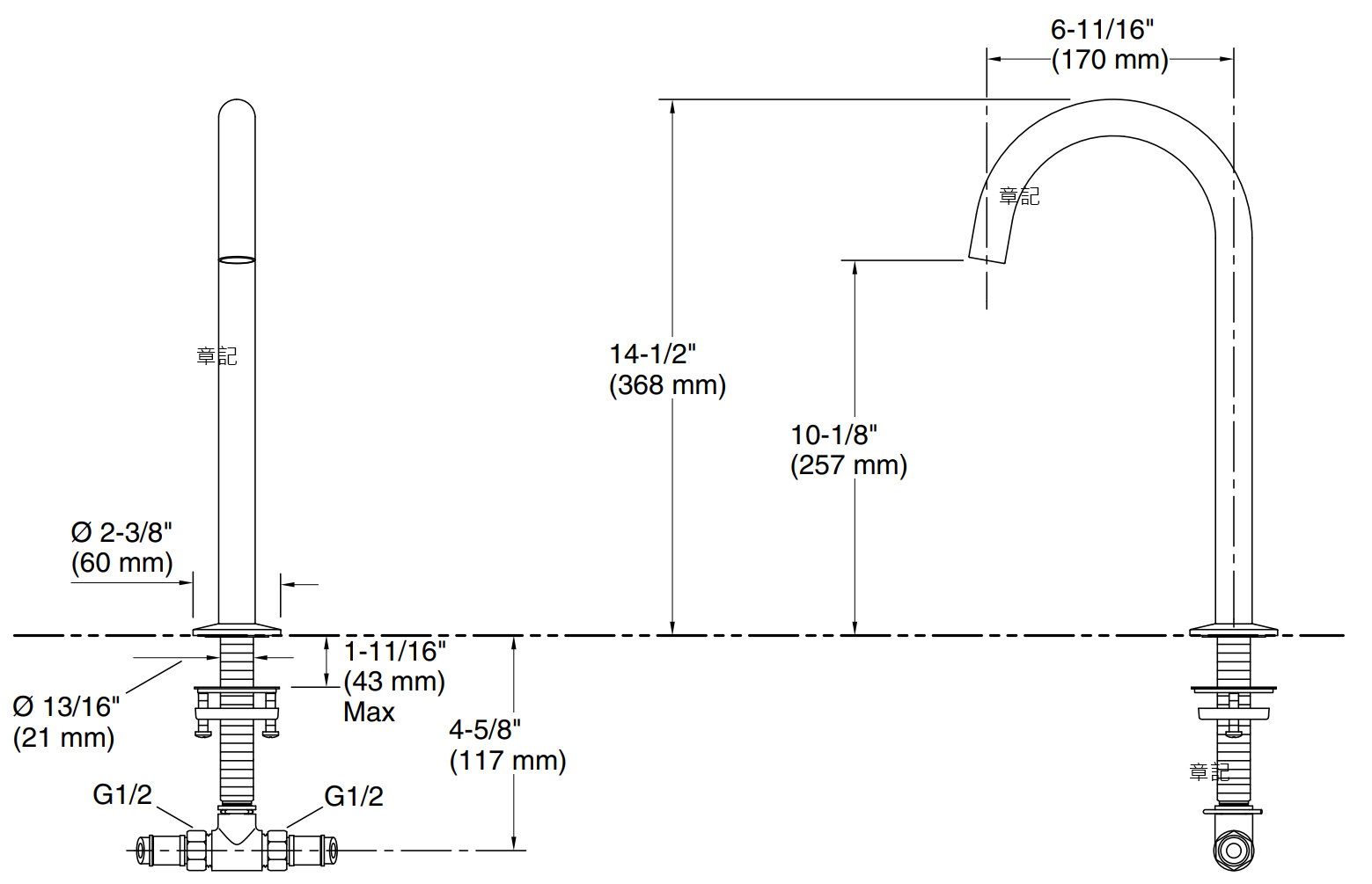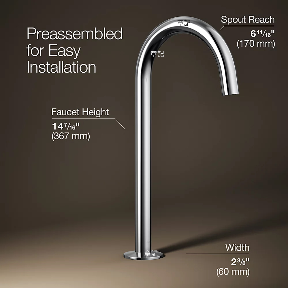 KOHLER Components 高腳臉盆龍頭 K-77965T-CP_K-77963T-8A-CP 尺寸圖