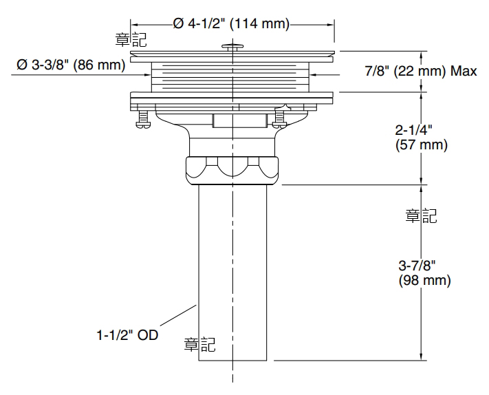 KOHLER 水槽落水頭含尾管 K-8801-CP 尺寸圖