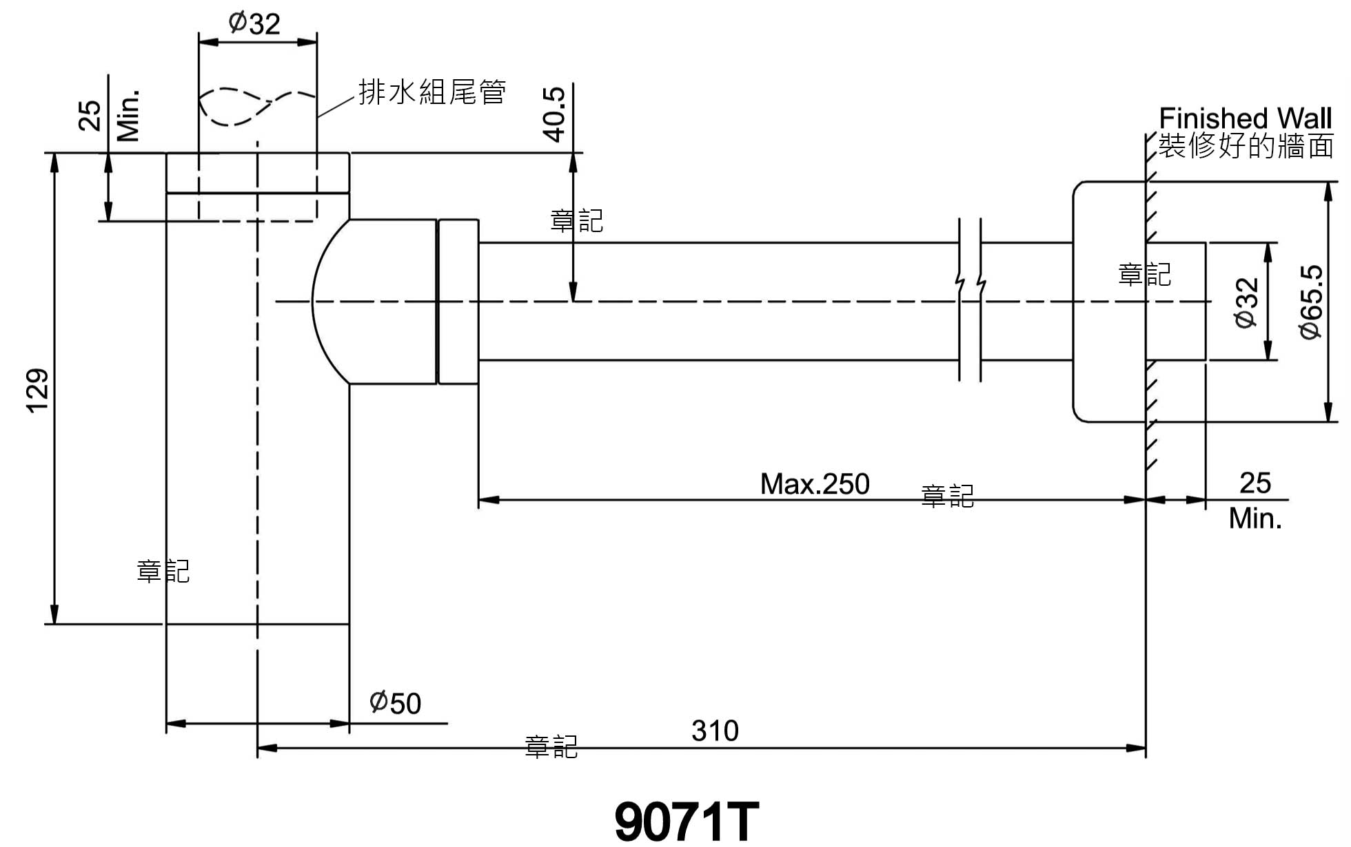 KOHLER 掛牆式去水彎管 K-9071T-CP 尺寸圖