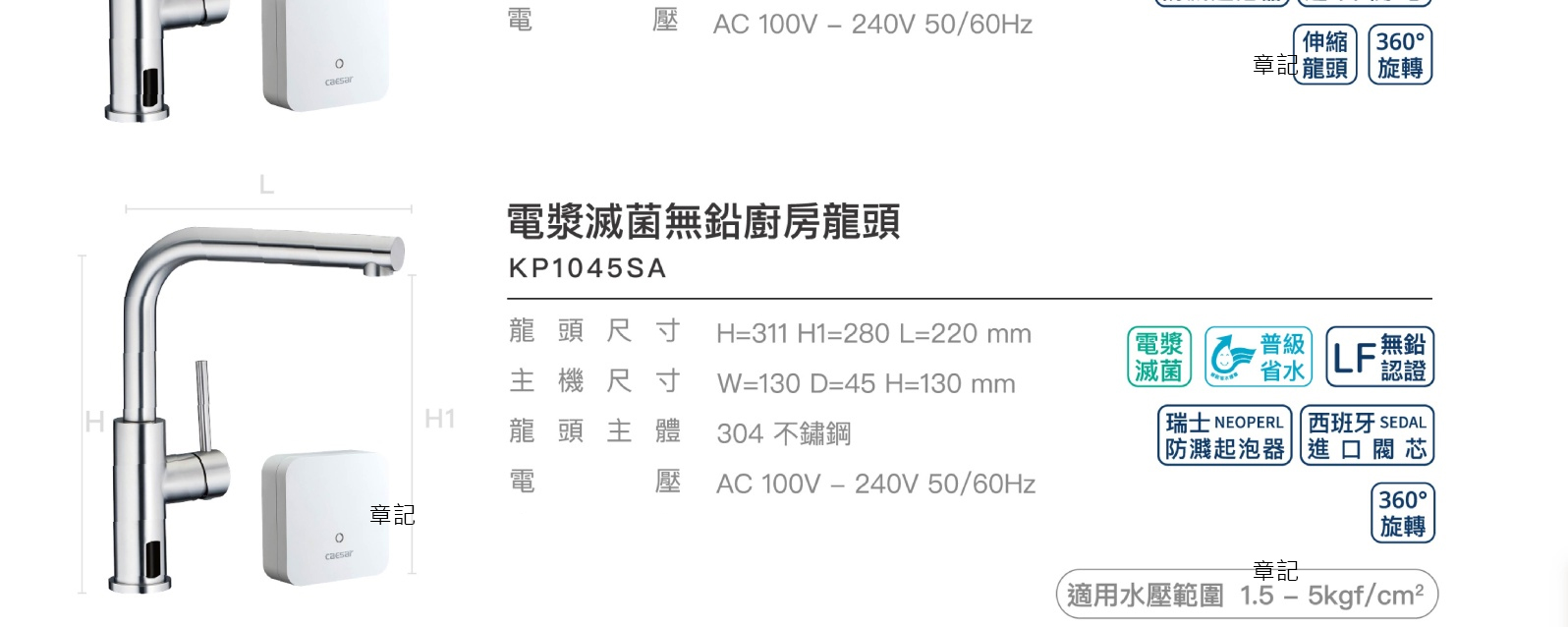 LF無鉛龍頭 | 瑞士NEOPERL防濺起泡器 | SEDAL西班牙閥心 | 普級省水