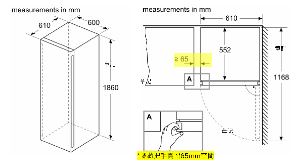 BOSCH 獨立式紅酒櫃 KWK36ABGA 尺寸圖