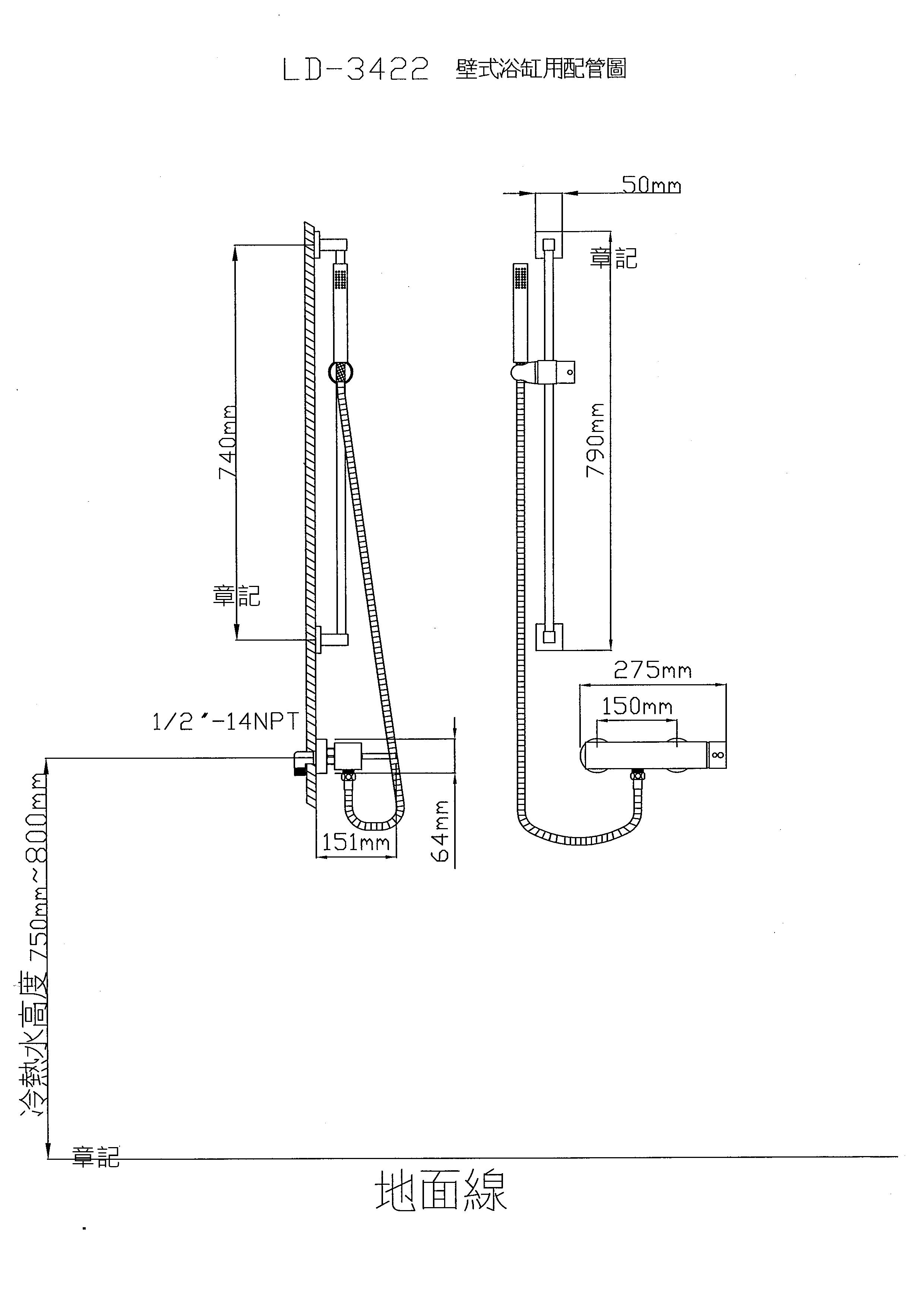 麗萊登(LILAIDEN)時尚淋浴柱 LD-3422 尺寸圖